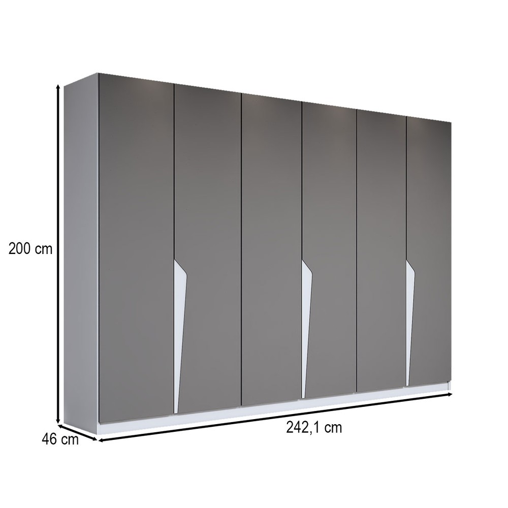O(a) Guarda-Roupa Casal Luxe 2,42 Metros 6 Portas 4 Gavetas Branco/Cinza - Panorama Móveis é produzido em MDF e MDP na escala de brilho Semi-Fosco, e possui um grau de dificuldade de montagem: Médio.