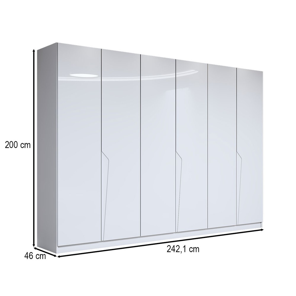 O(a) Guarda-Roupa Casal Luxe 2,42 Metros 6 Portas 4 Gavetas Branco - Panorama Móveis é produzido em MDF e MDP na escala de brilho Semi-Fosco, e possui um grau de dificuldade de montagem: Médio.