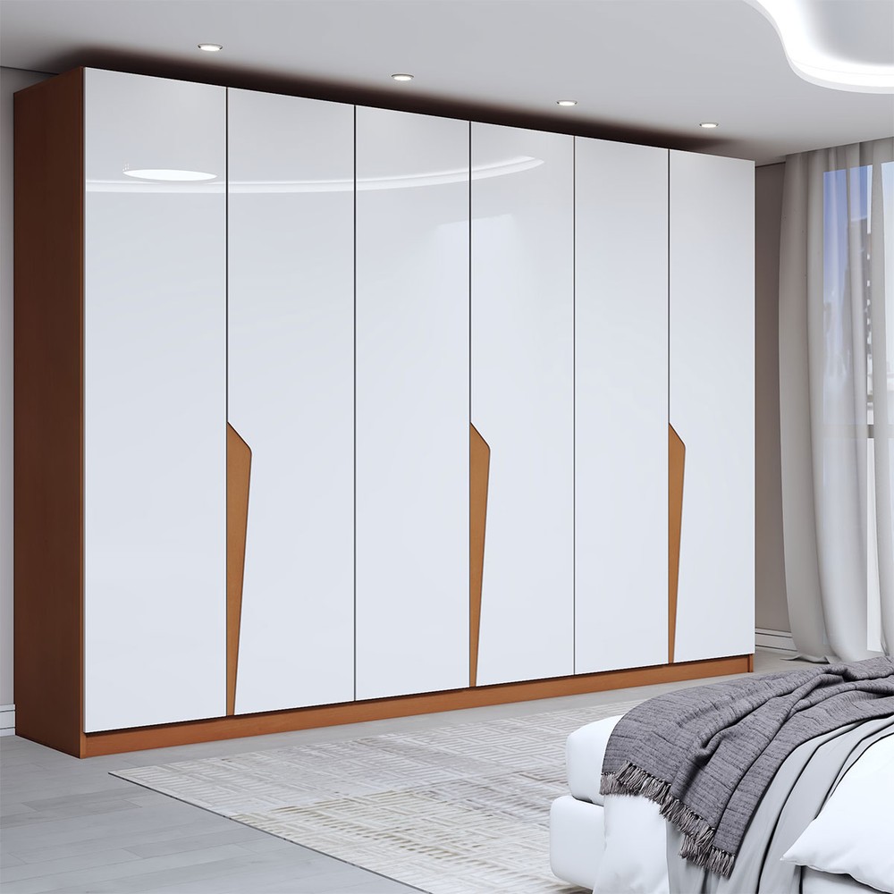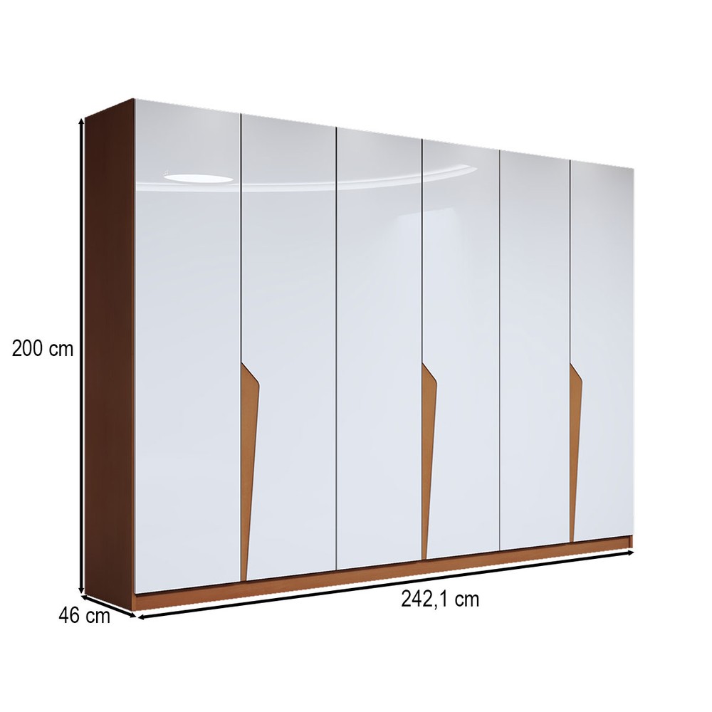 O(a) Guarda-Roupa Casal Luxe 2,42 Metros 6 Portas 4 Gavetas Freijó/Branco - Panorama Móveis é produzido em MDF e MDP na escala de brilho Semi-Fosco, e possui um grau de dificuldade de montagem: Médio.