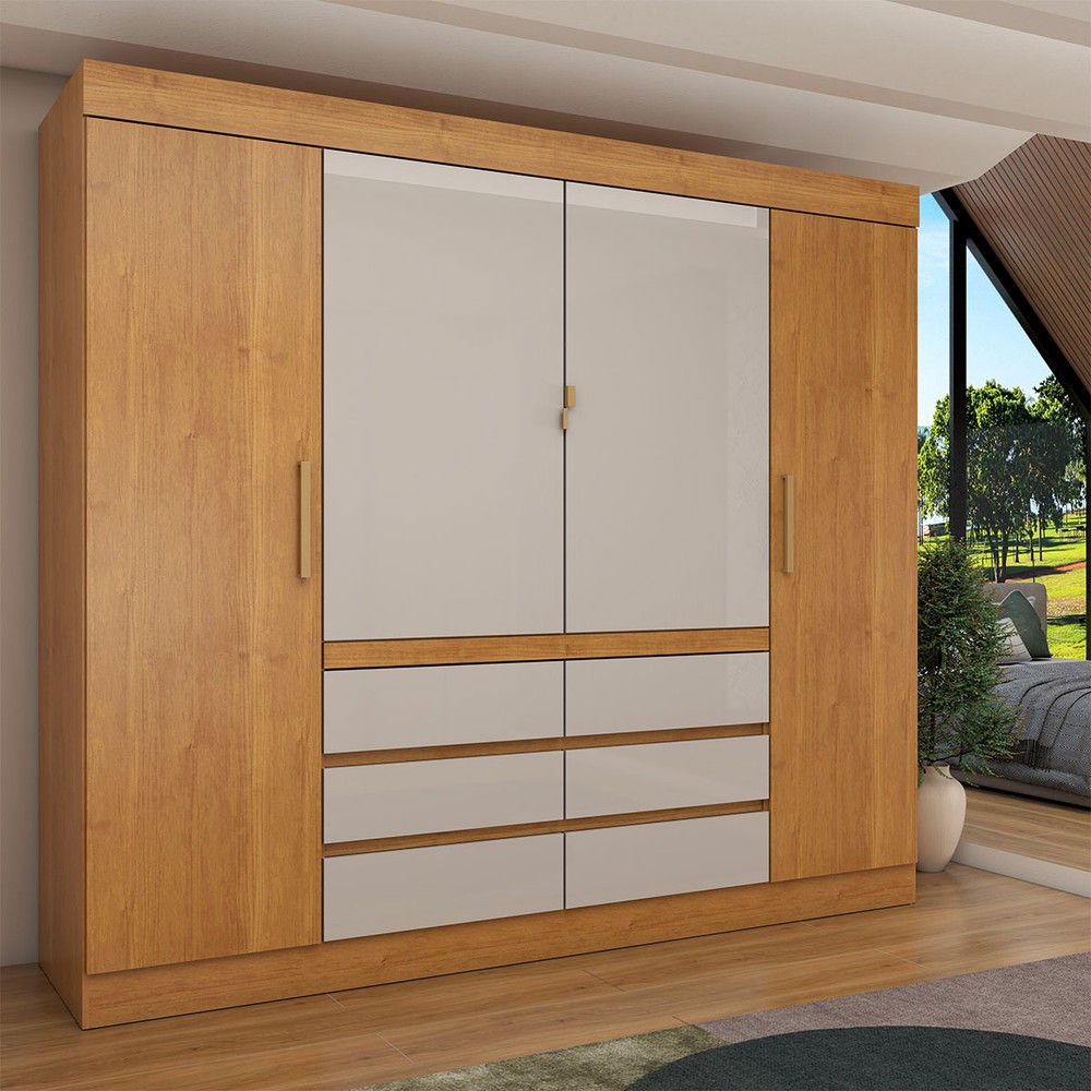 O(a) Guarda-Roupa Casal Luxúria 4 Portas 6 Gavetas Cinamomo/Off White - Panorama Móveis é produzido em MDP na escala de brilho Semi-Brilho, e possui um grau de dificuldade de montagem: Médio.