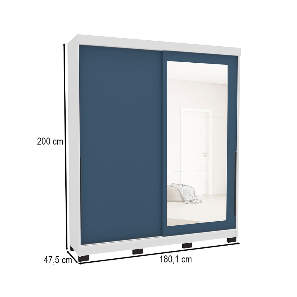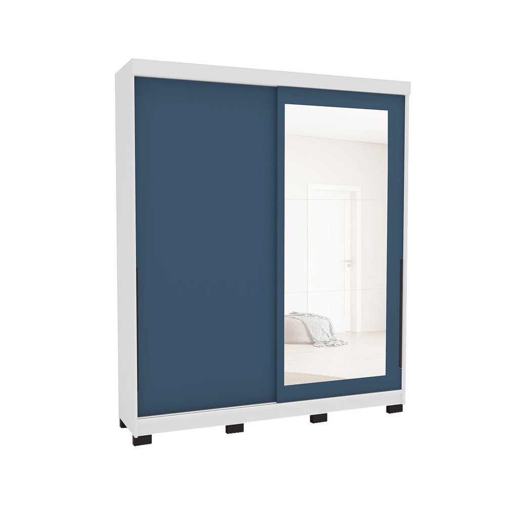 Guarda-Roupa Casal Madrid 2 Portas 2 Gavetas com Espelho Azul/Branco - Politorno