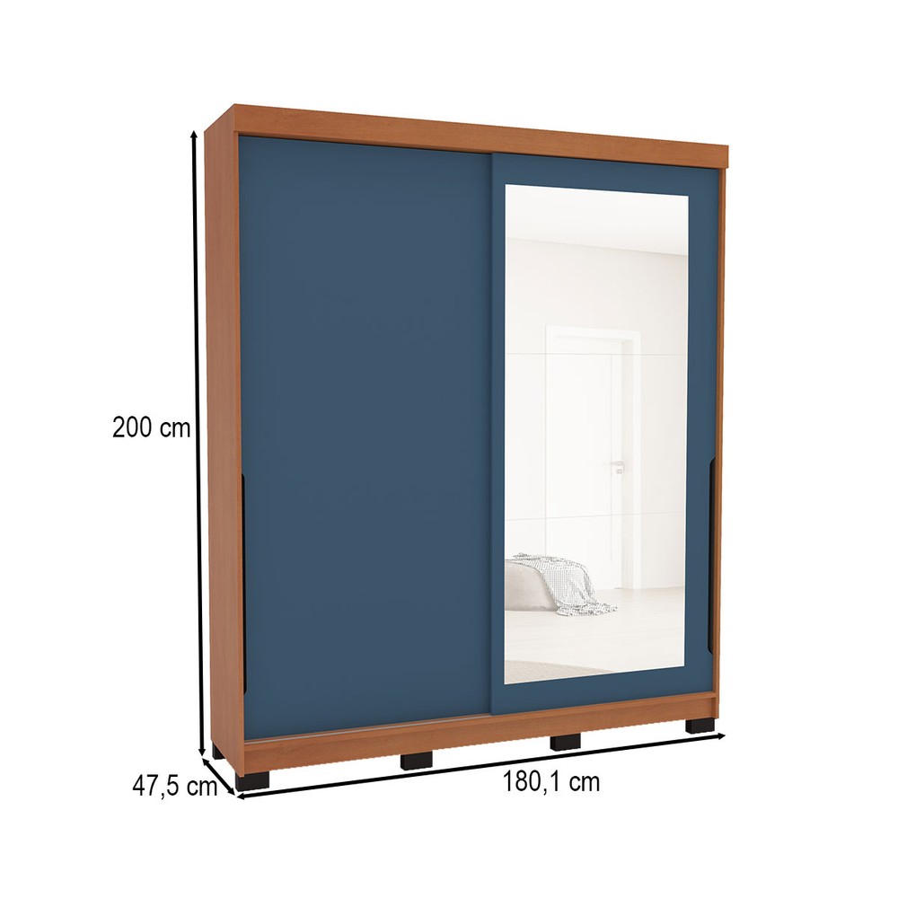 Guarda-Roupa Casal Madrid 2 Portas 2 Gavetas com Espelho Azul/Freijó - Politorno