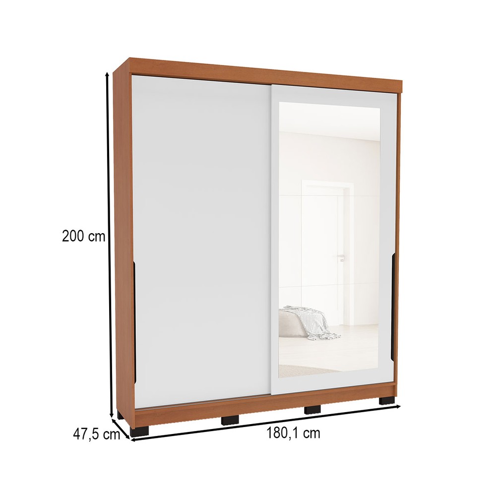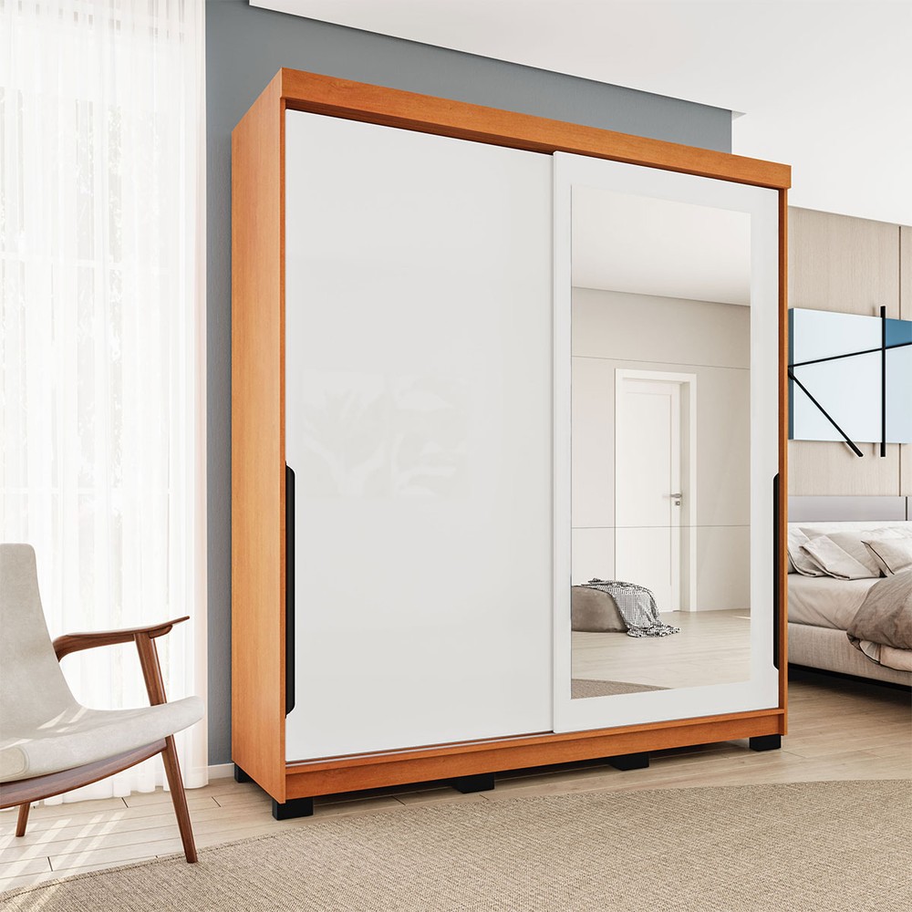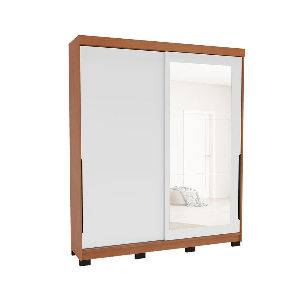 Guarda-Roupa Casal Madrid 2 Portas 2 Gavetas com Espelho Branco/Freijó - Politorno