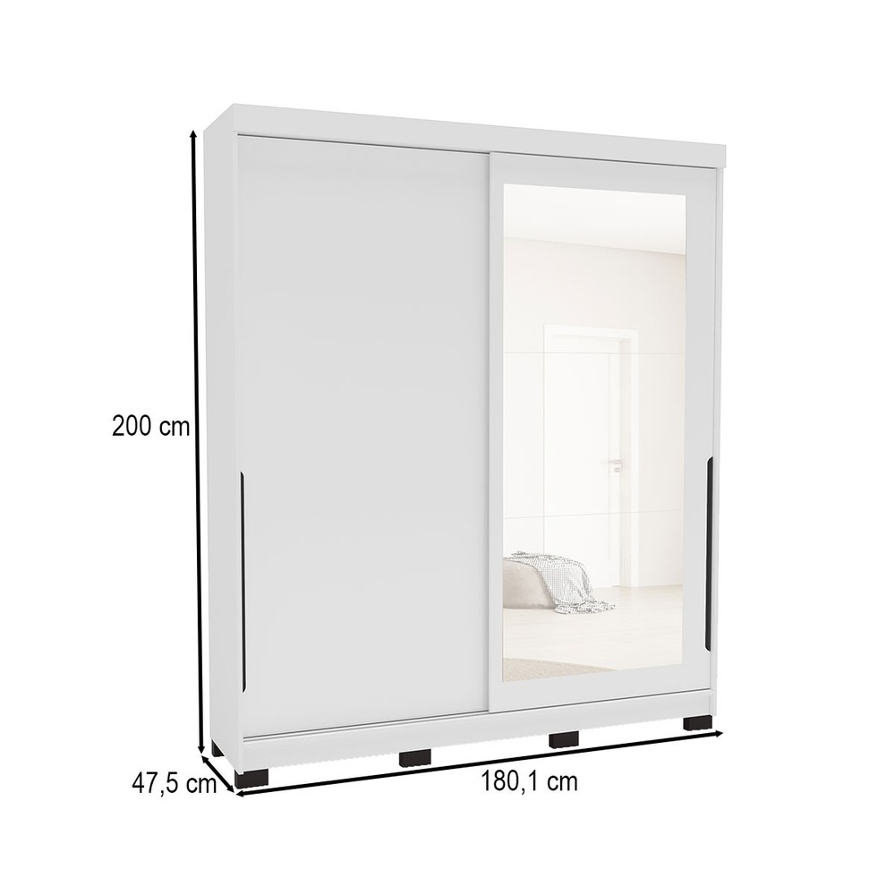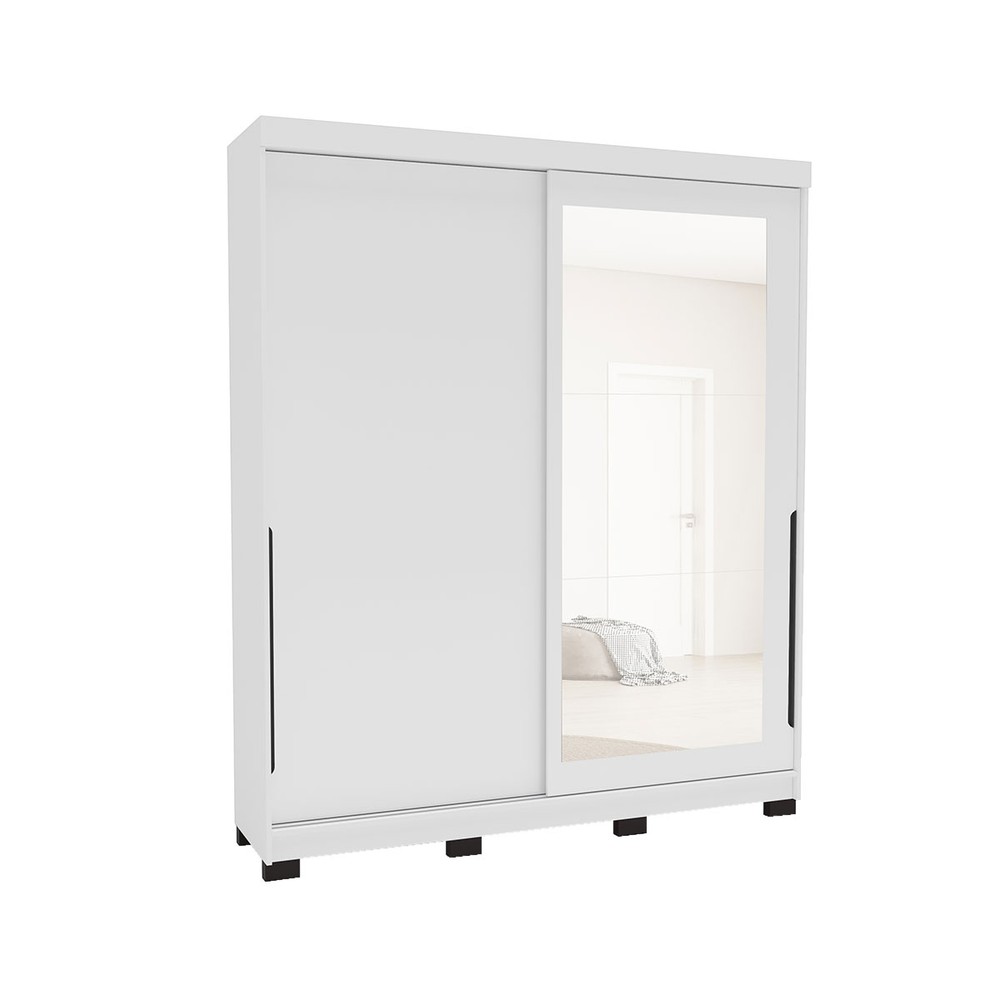 Guarda-Roupa Casal Madrid 2 Portas 2 Gavetas com Espelho Branco - Politorno