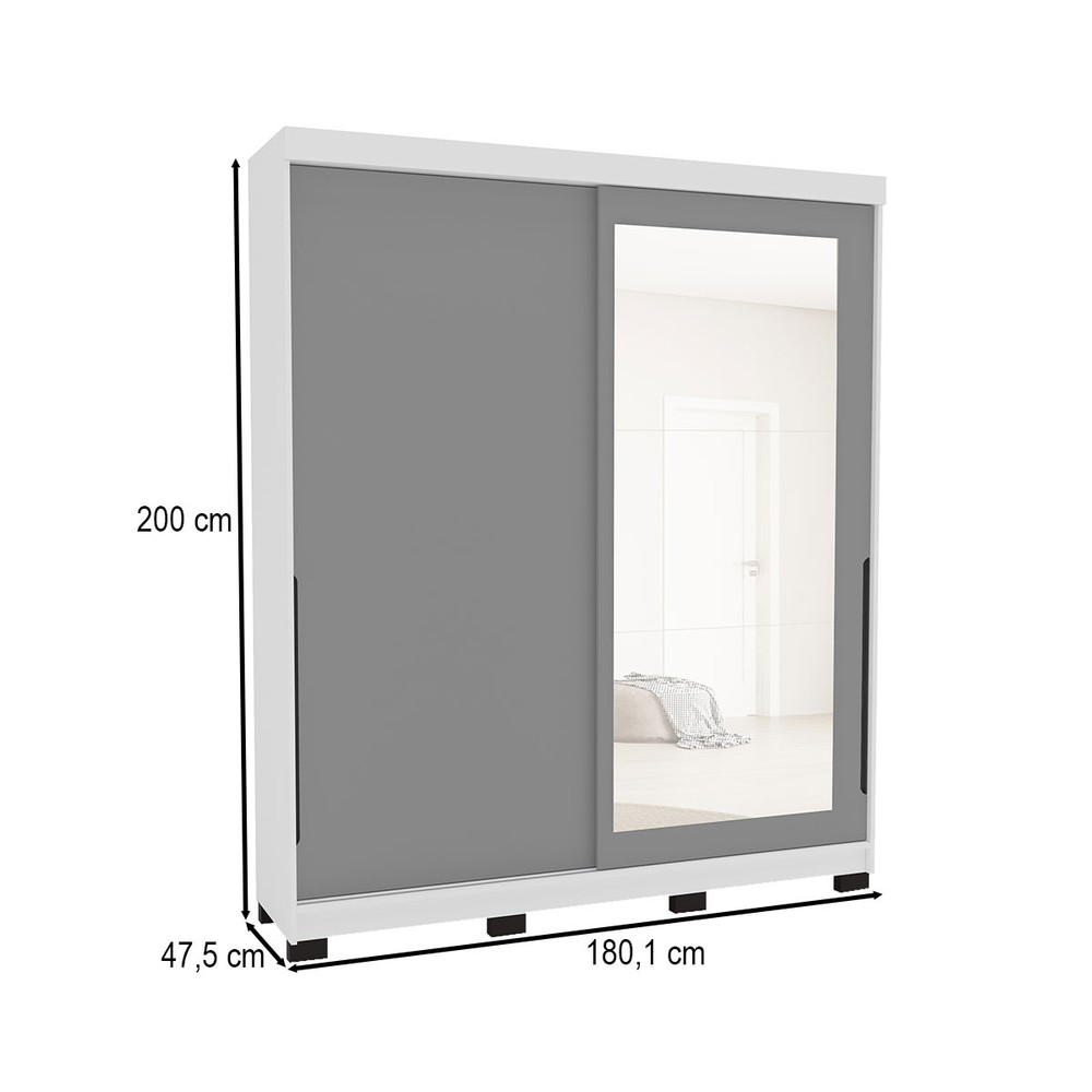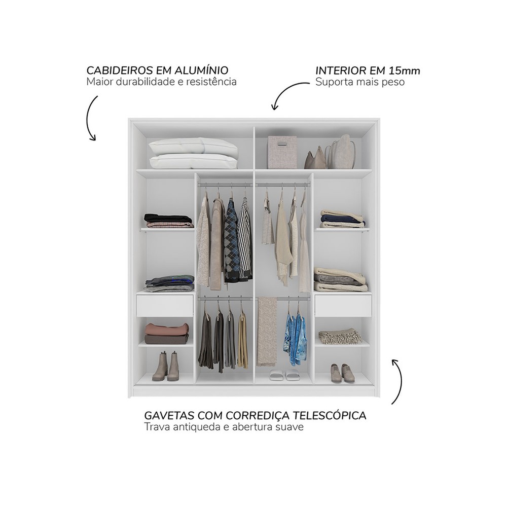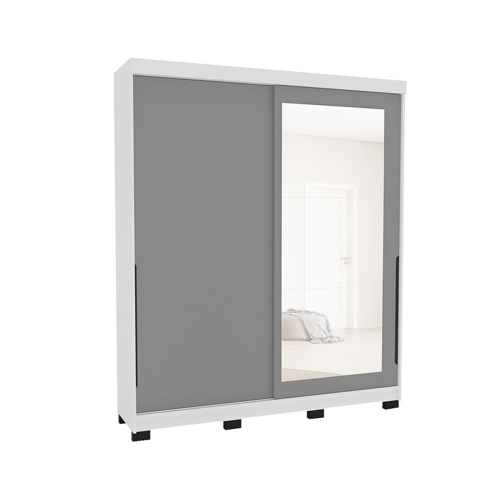 Guarda-Roupa Casal Madrid 2 Portas 2 Gavetas com Espelho Cinza/Branco - Politorno