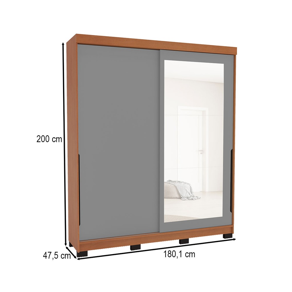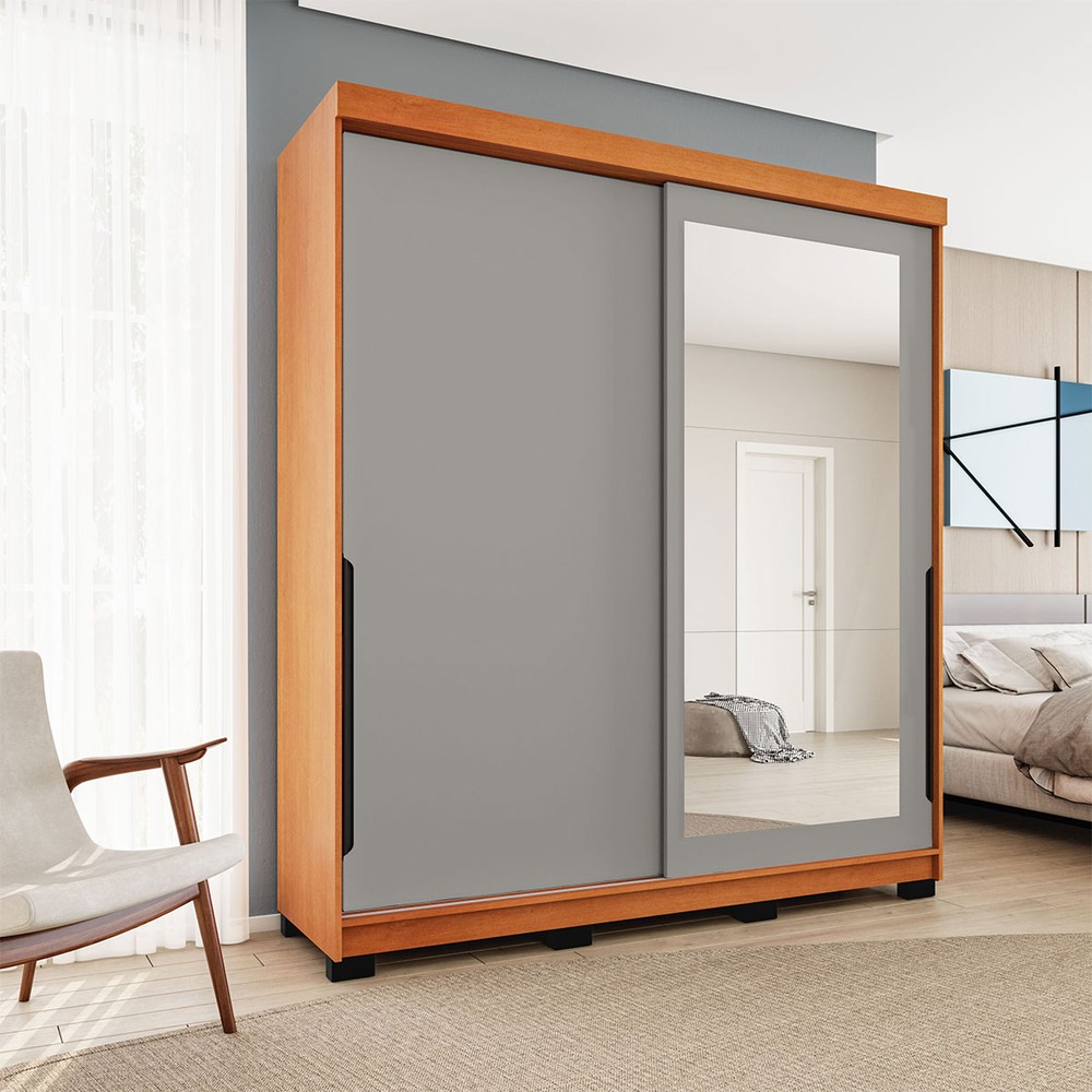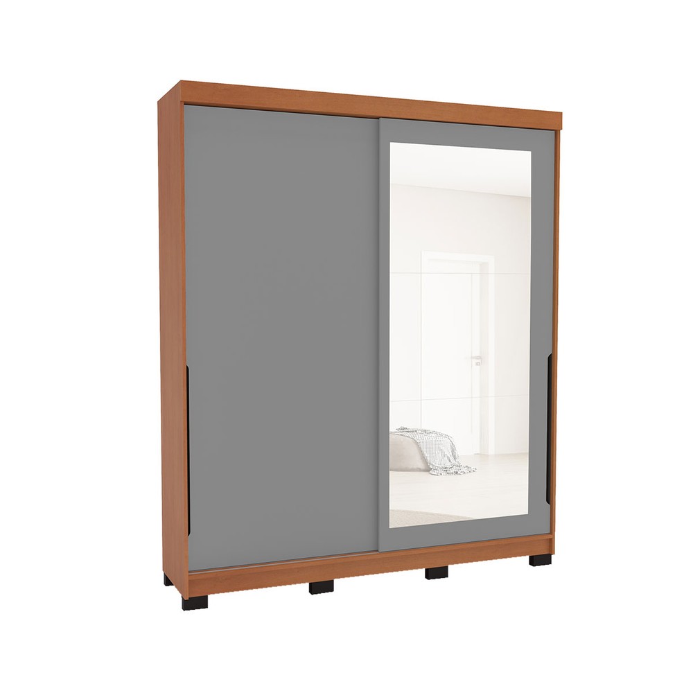 Guarda-Roupa Casal Madrid 2 Portas 2 Gavetas com Espelho Cinza/Freijó - Politorno