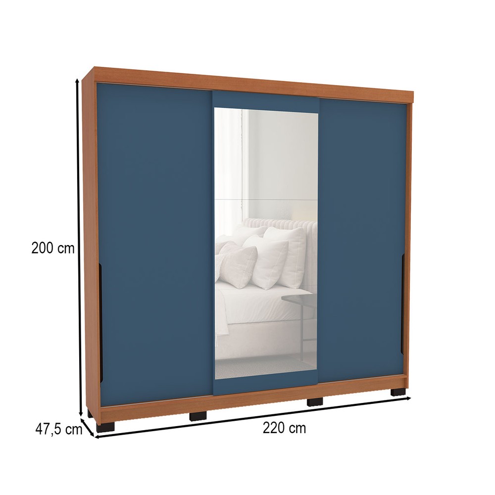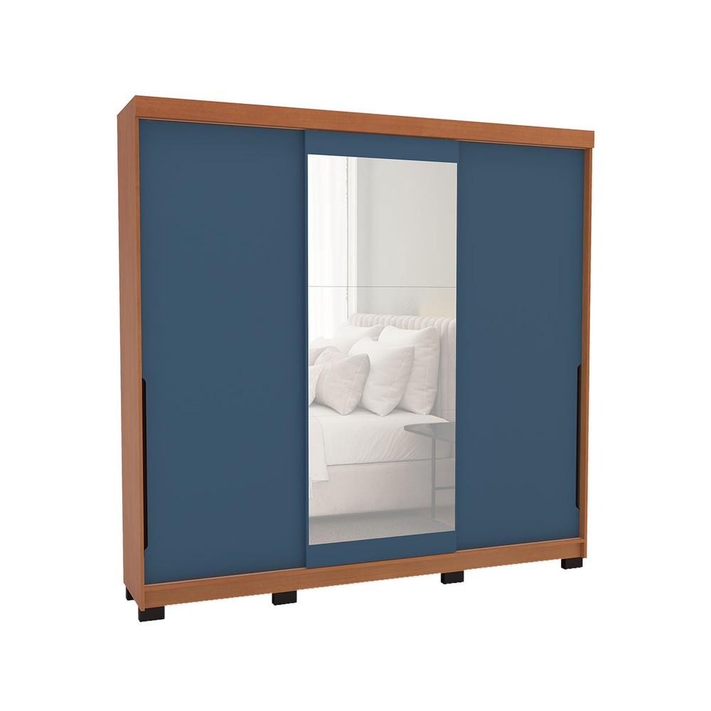 Guarda-Roupa Casal Madrid 3 Portas 4 Gavetas com Espelho Azul/Freijó - Politorno