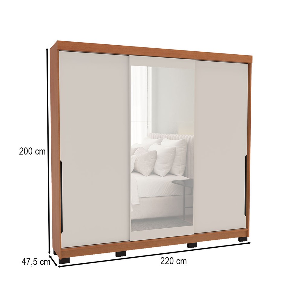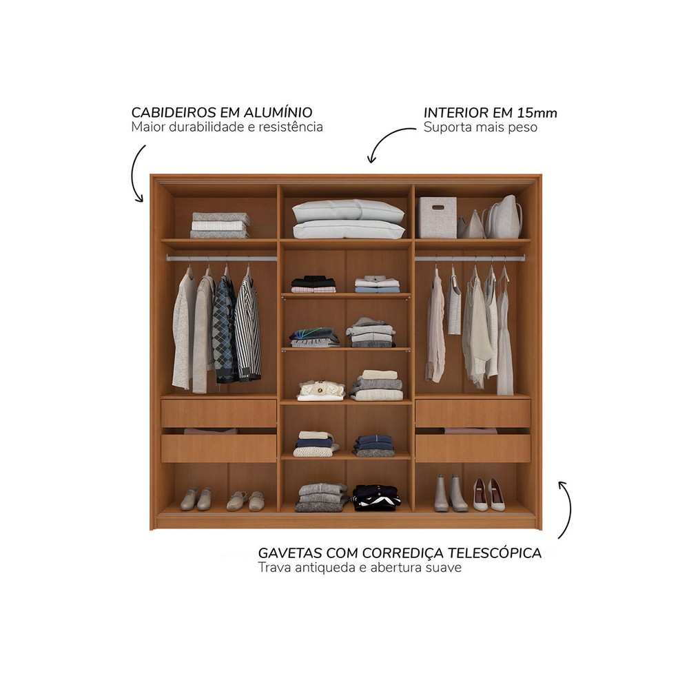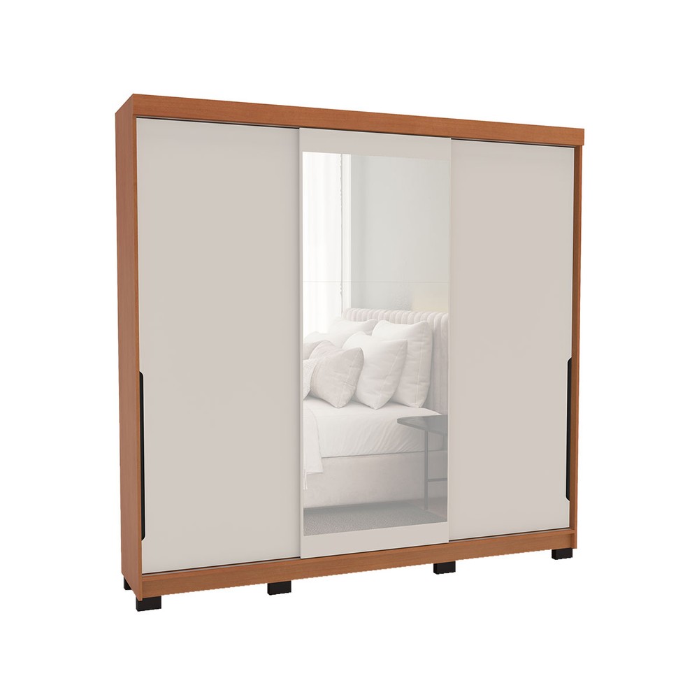 Guarda-Roupa Casal Madrid 3 Portas 4 Gavetas com Espelho Creme/Freijó - Politorno
