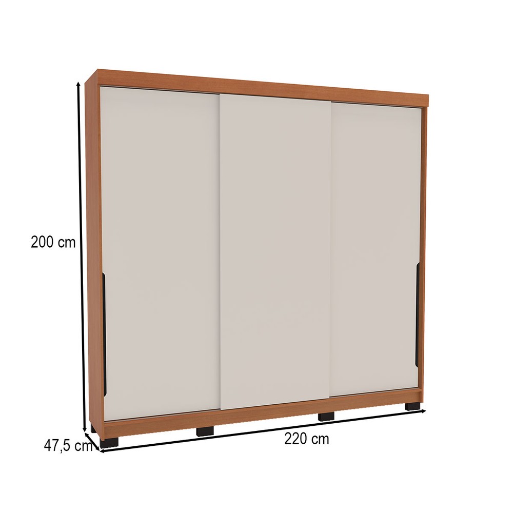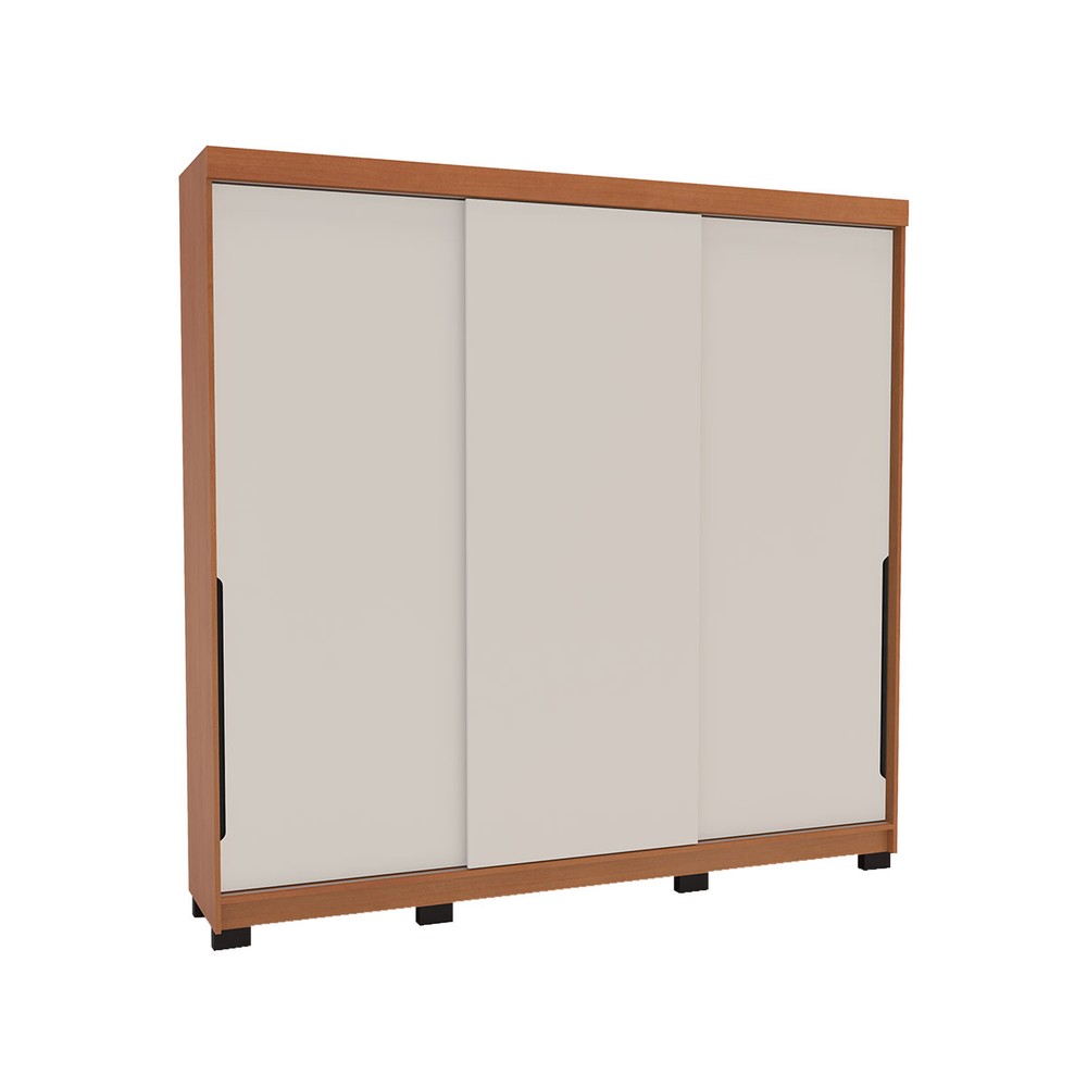 Guarda-Roupa Casal Madrid 3 Portas 4 Gavetas Creme/Freijó - Politorno