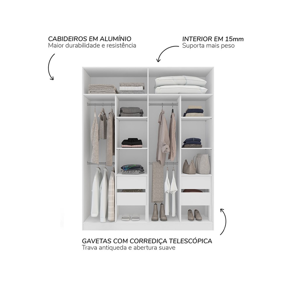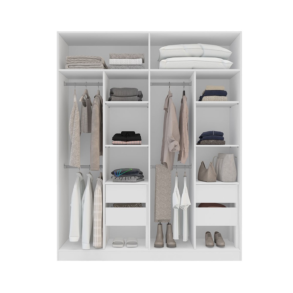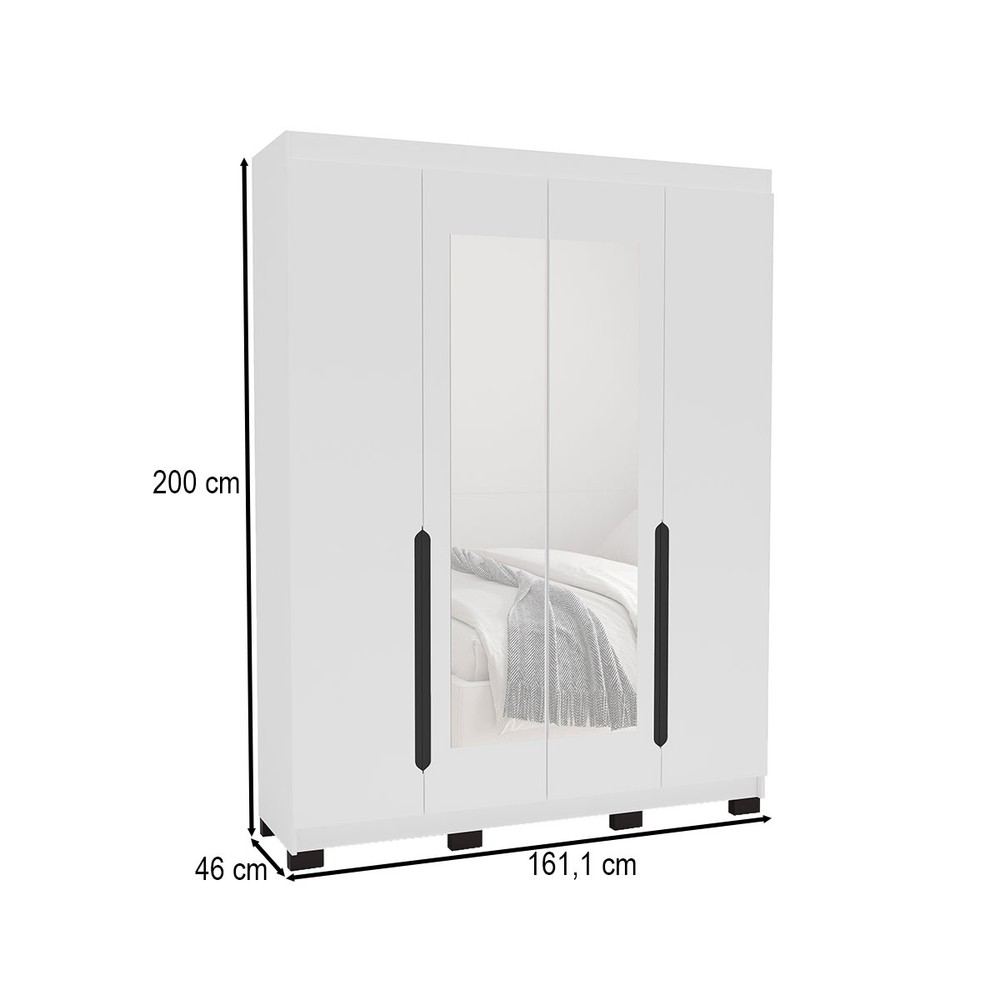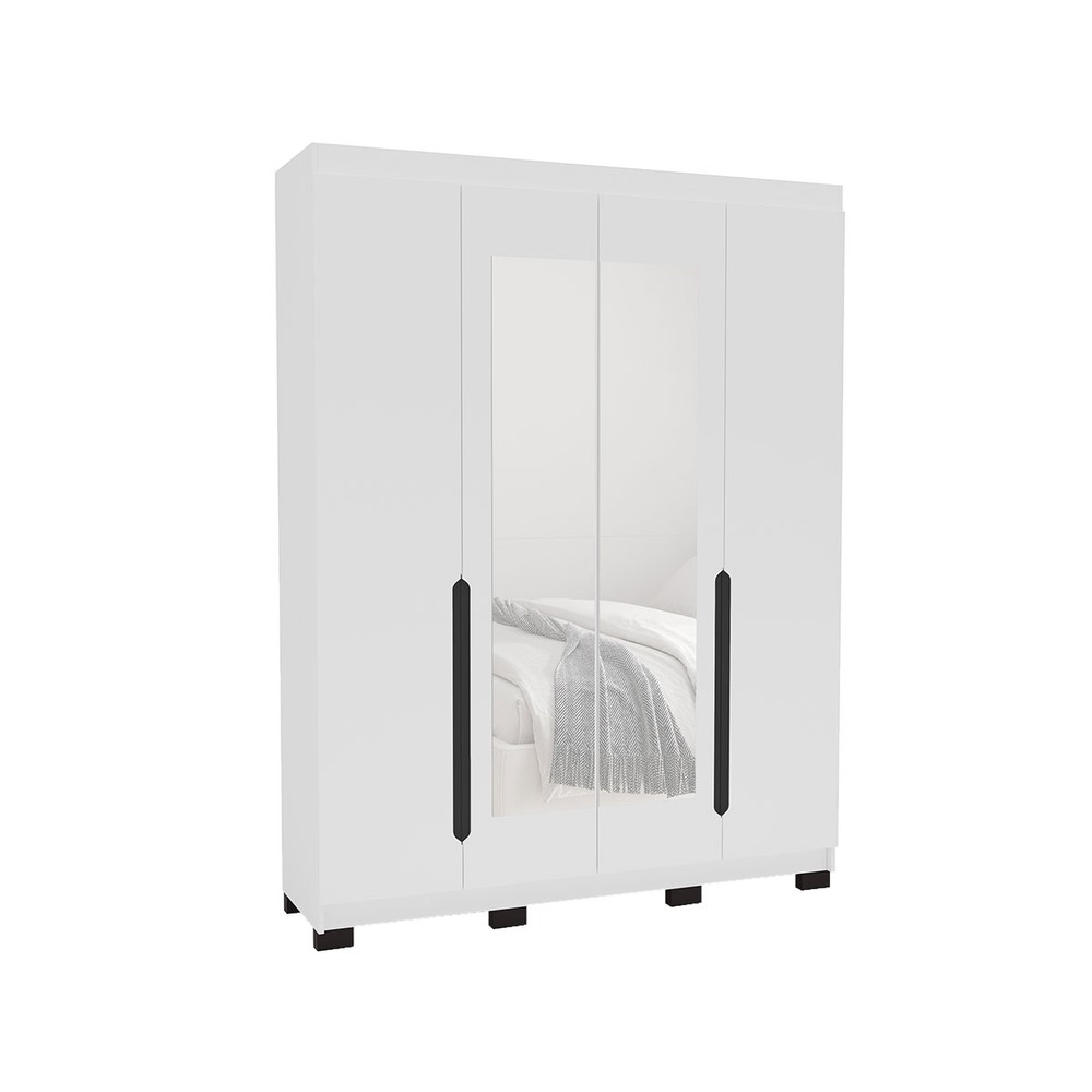 Guarda-Roupa Casal Madrid 4 Portas 4 Gavetas com Espelho Branco - Politorno