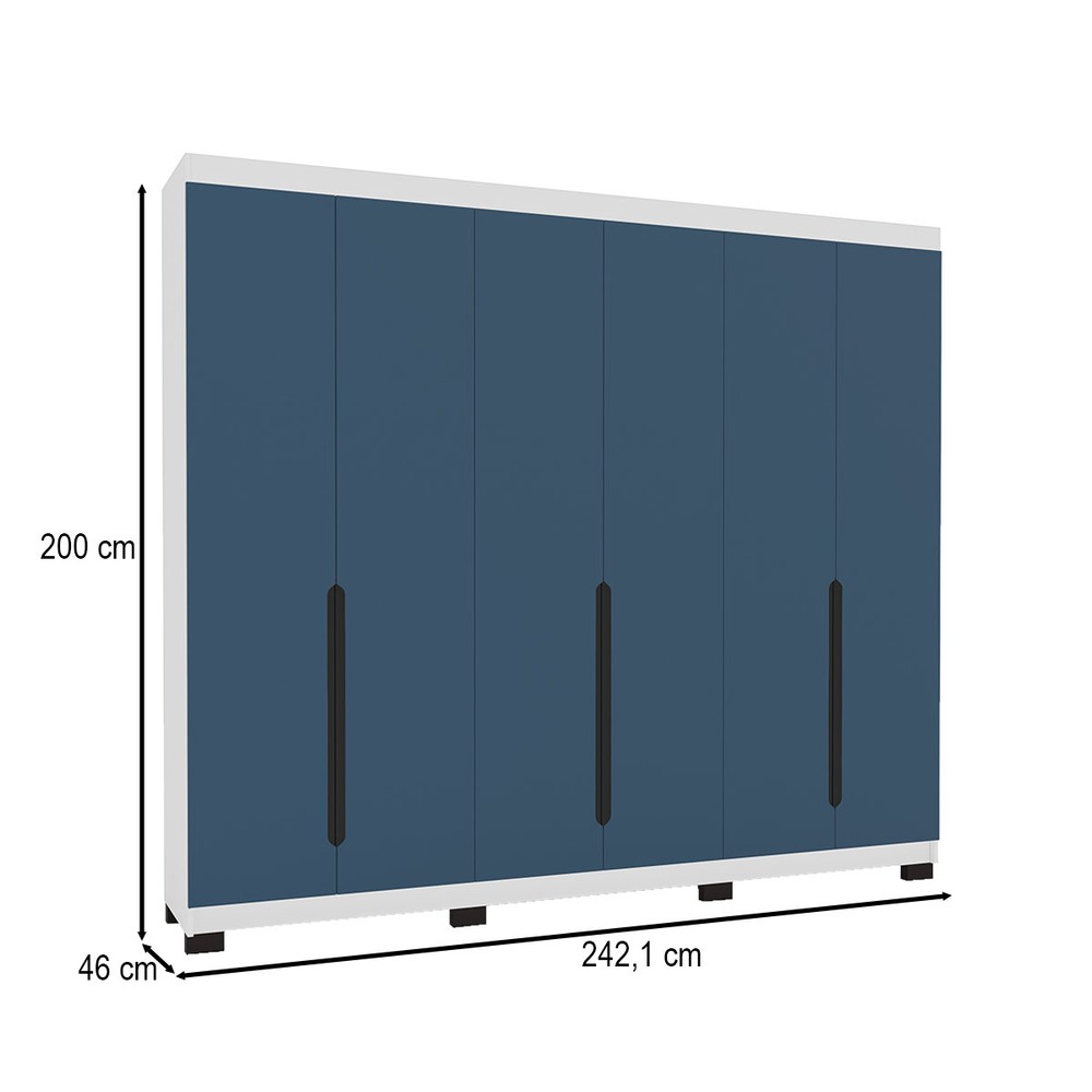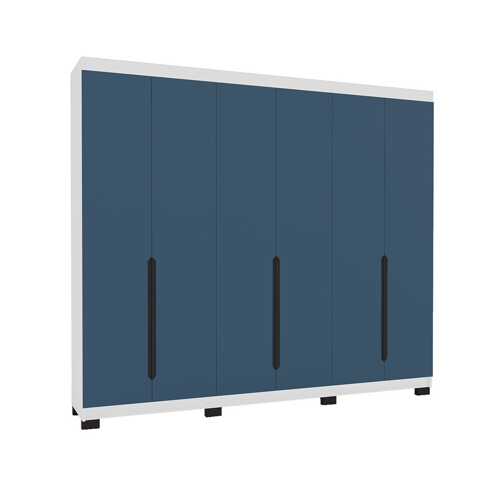 Guarda-Roupa Casal Madrid 6 Portas 4 Gavetas Azul/Branco - Politorno