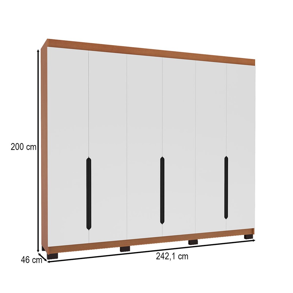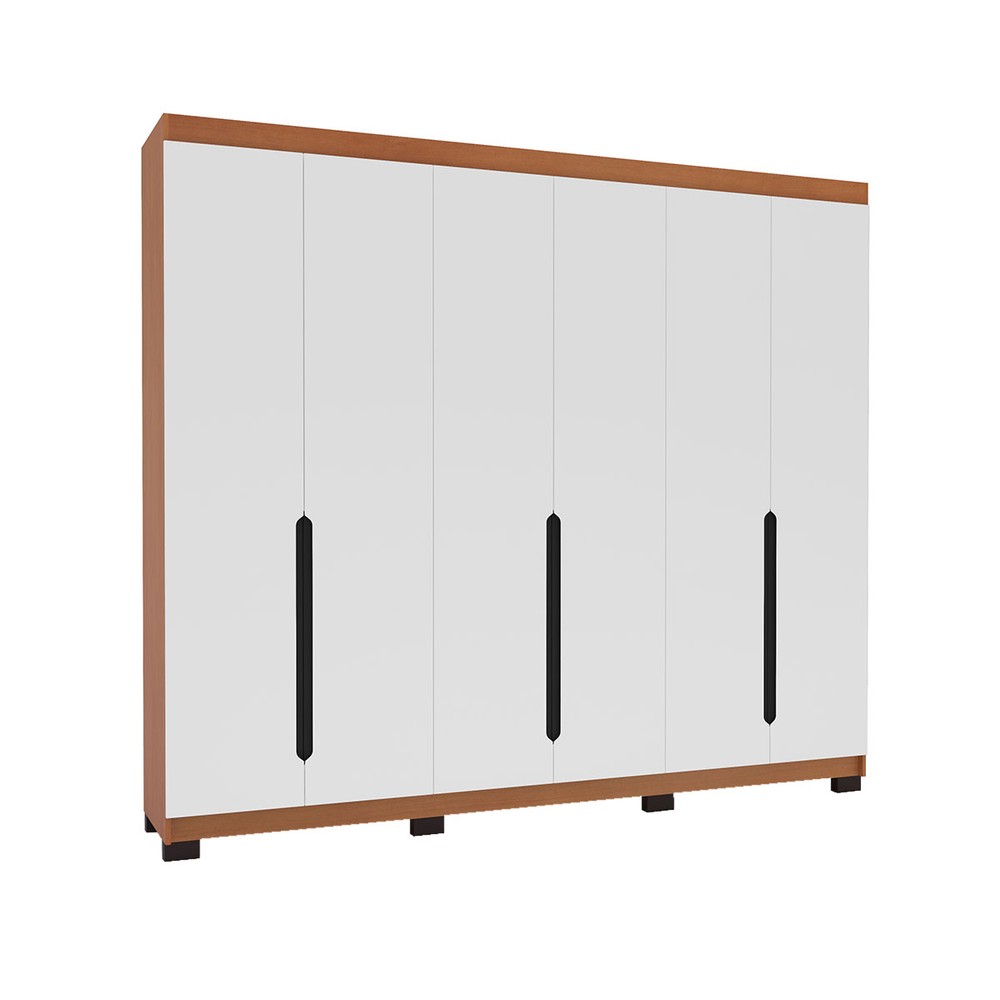 Guarda-Roupa Casal Madrid 6 Portas 4 Gavetas Branco/Freijó - Politorno