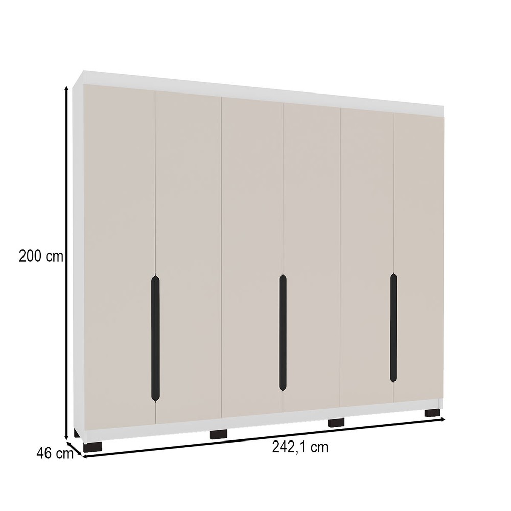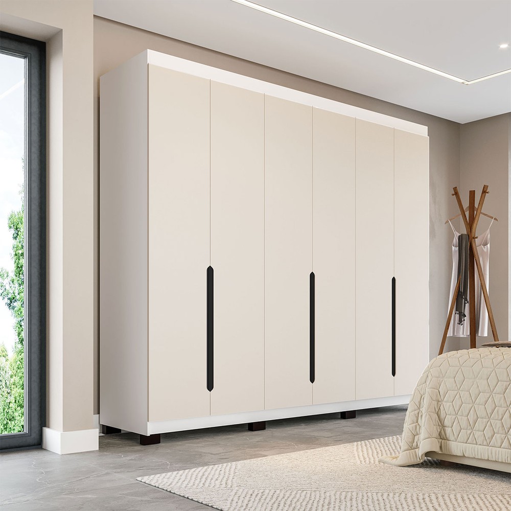 Guarda-Roupa Casal Madrid 6 Portas 4 Gavetas Creme/Branco - Politorno