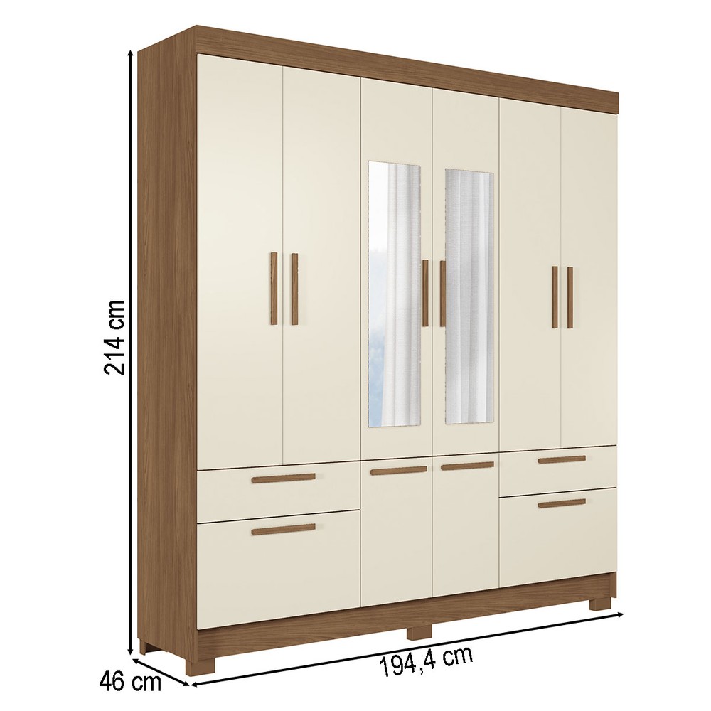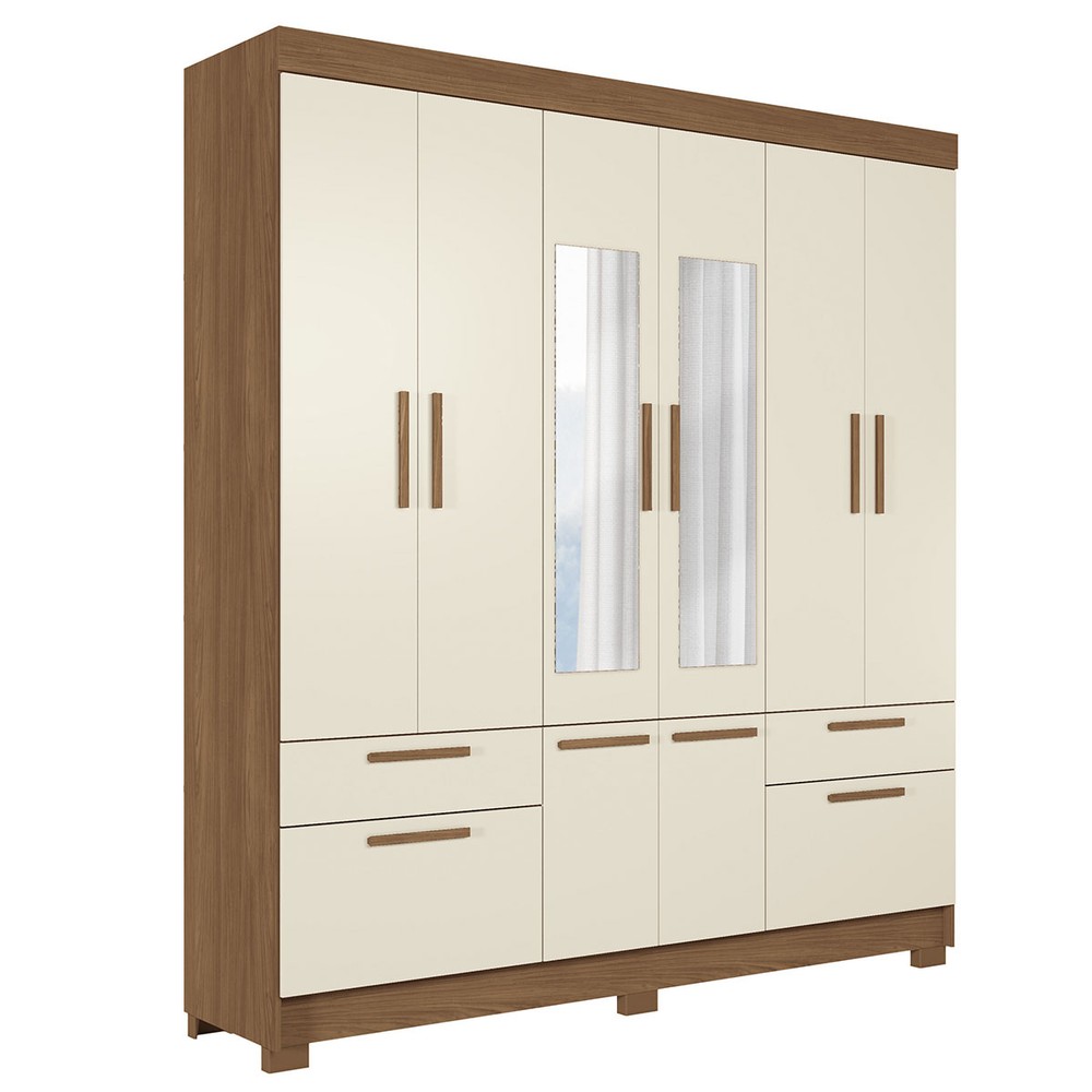 Guarda-Roupa Casal Marilena 6 Portas 9 Gavetas Jatoba/Areia com Espelho - Pnr Móveis