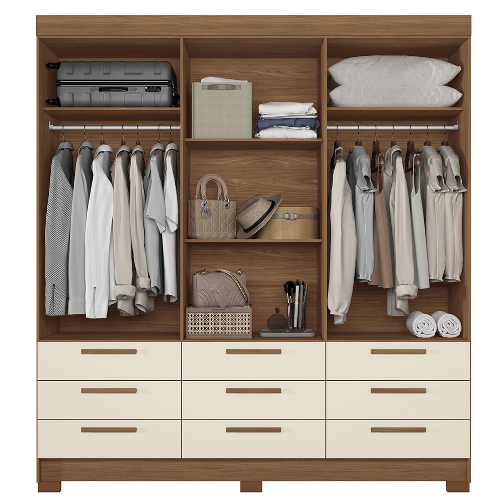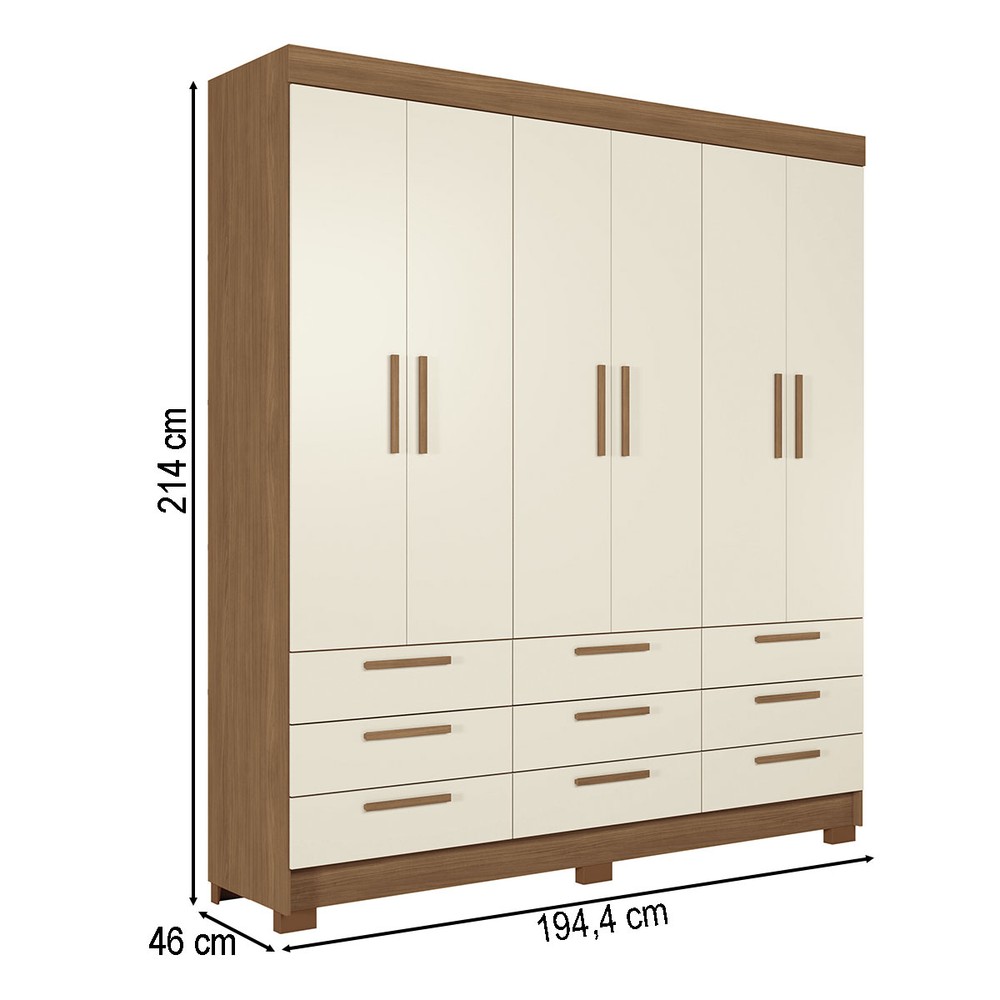 O(a) Guarda-Roupa Casal Marilena 6 Portas 9 Gavetas Jatoba/Areia - Pnr Móveis é produzido em MDF, MDP e HDF na escala de brilho Fosco, e possui um grau de dificuldade de montagem: Médio.