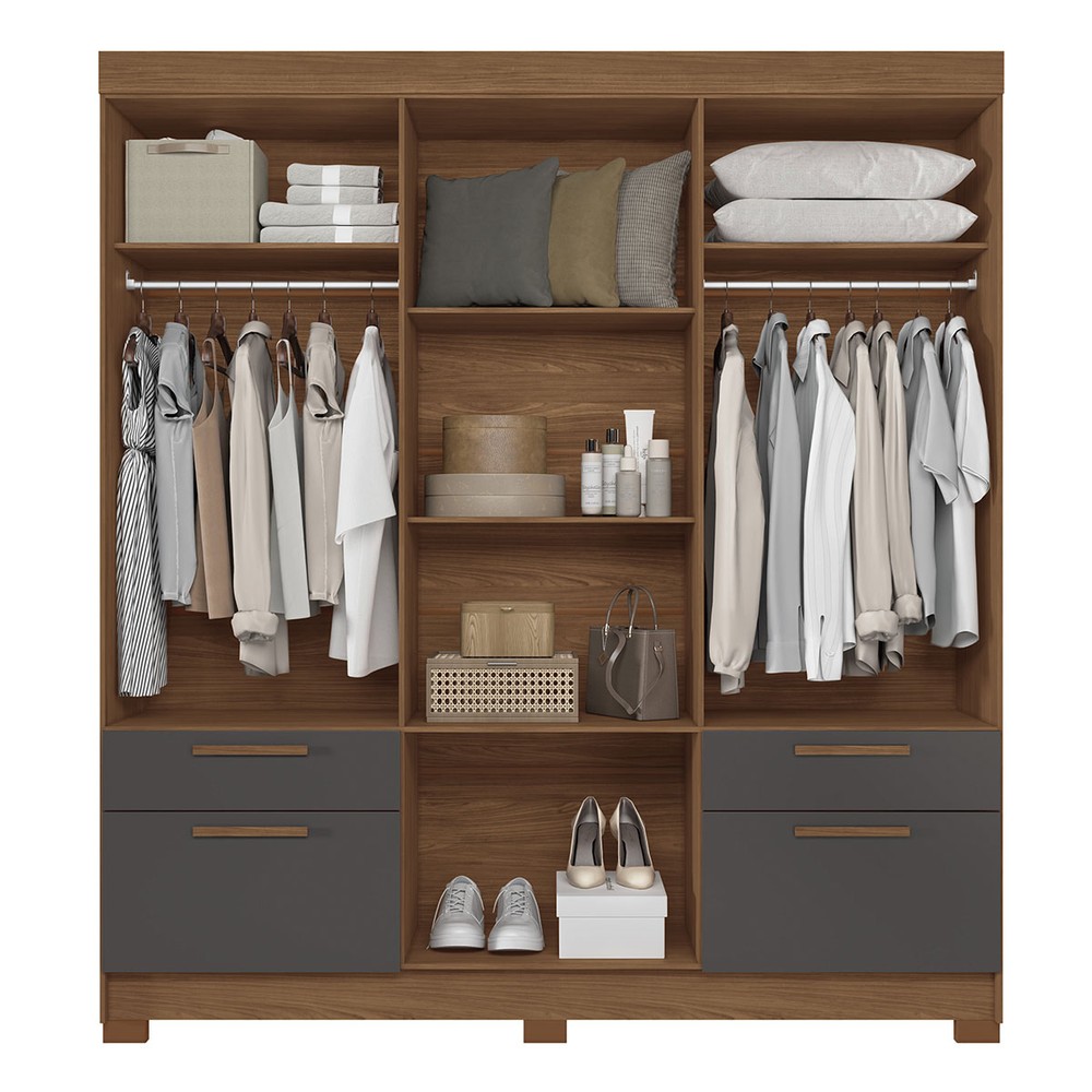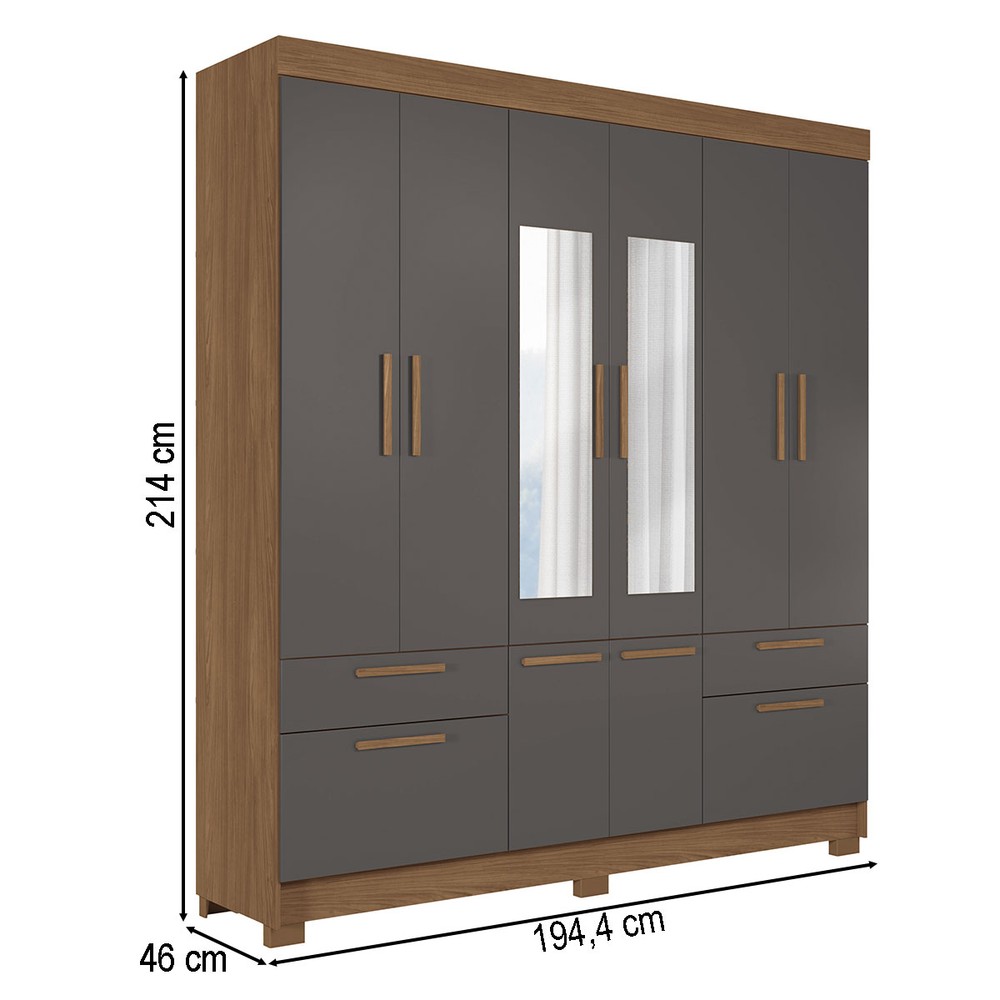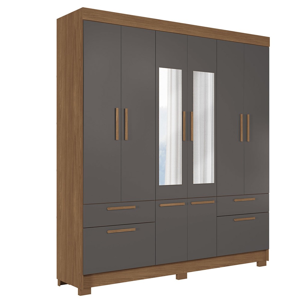 Guarda-Roupa Casal Marilena 6 Portas 9 Gavetas Jatoba/Grafite com Espelho - Pnr Móveis