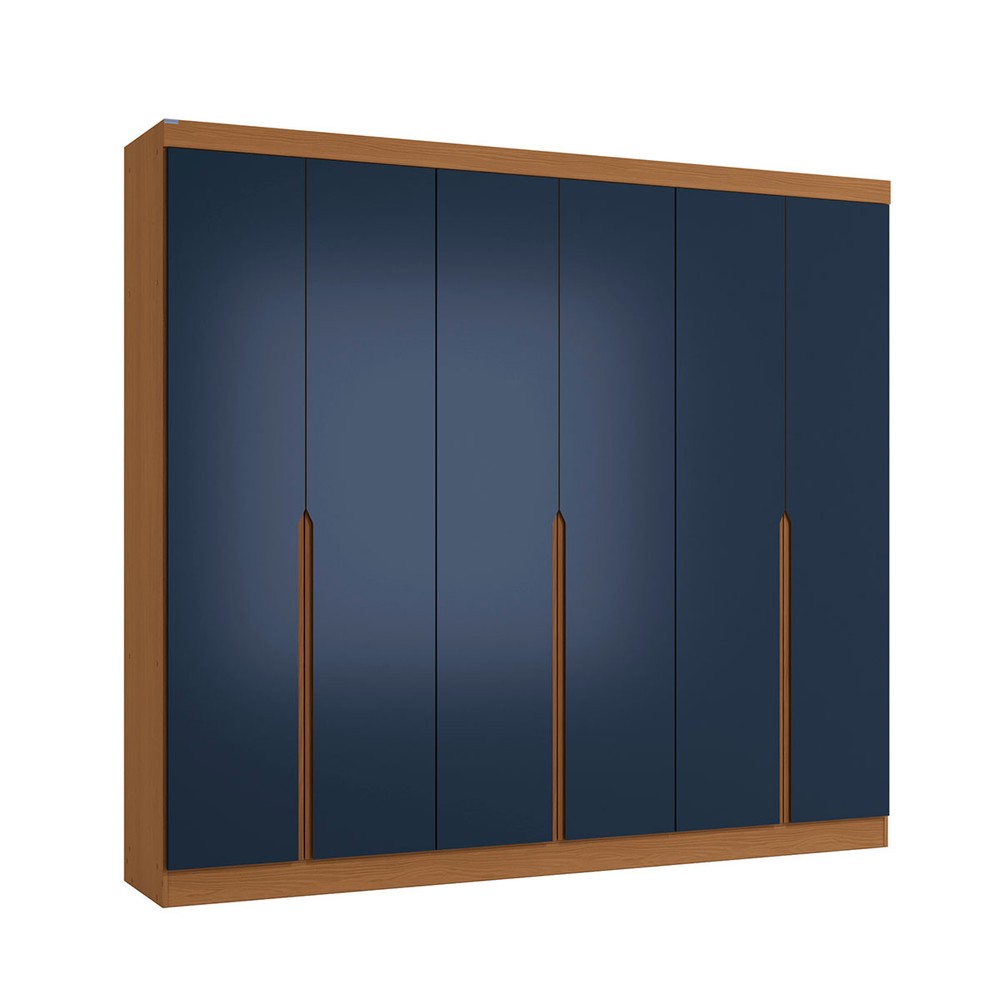 Guarda-Roupa Casal Marino 6 Portas 4 Gavetas Canela/Azul - Kappesberg