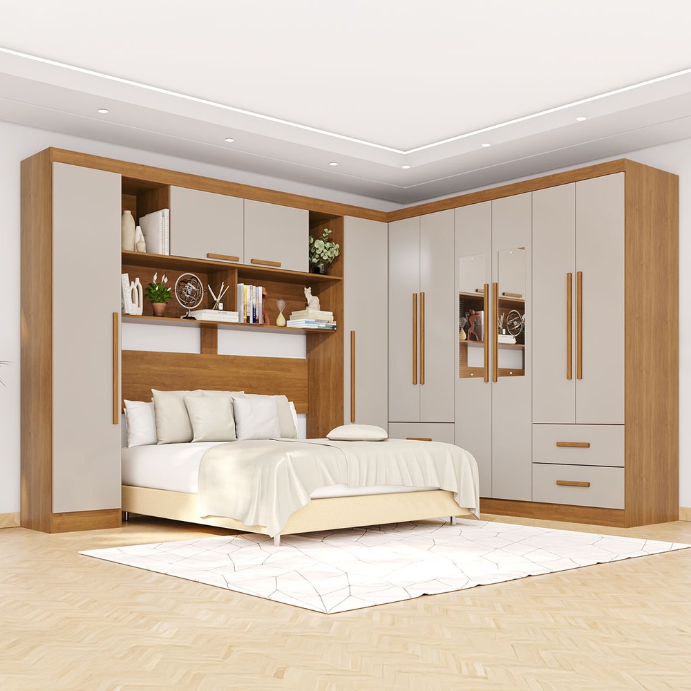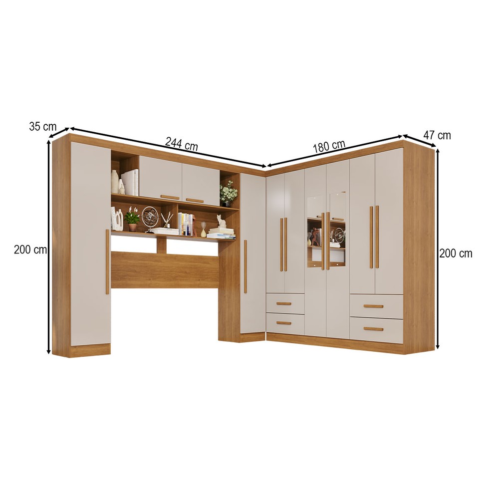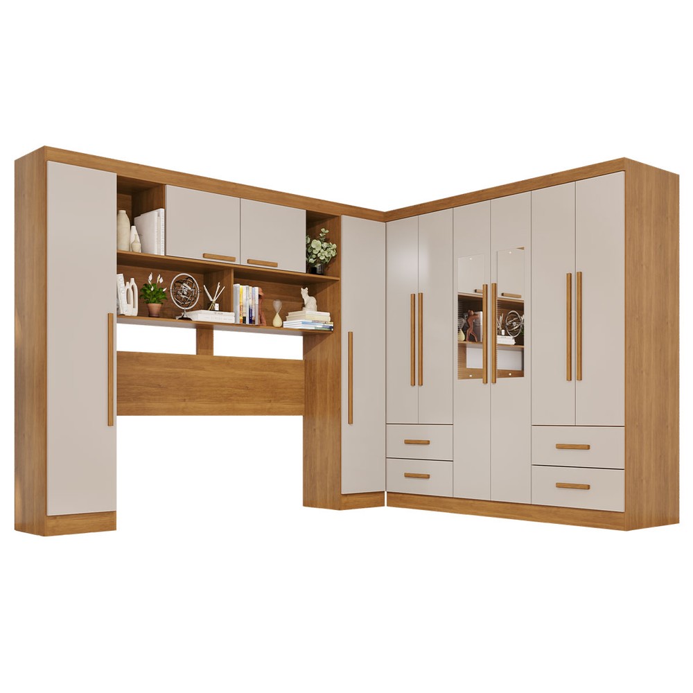 O(a) Guarda-Roupa Casal Modulado Andorra 10 Portas 4 Gavetas com Espelho Cinamomo/Off White - Pnr Móveis é produzido em MDP na escala de brilho Semi-Fosco, e possui um grau de dificuldade de montagem: Médio.