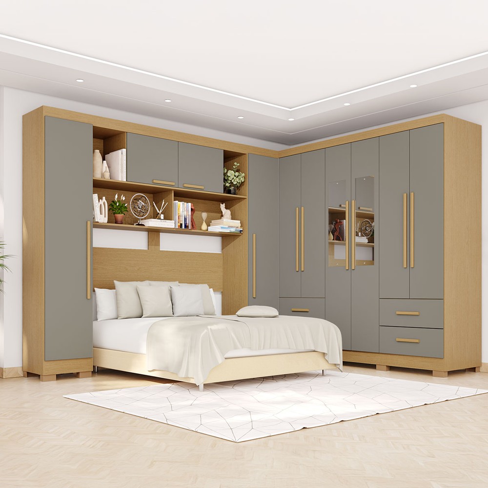 O(a) Guarda-Roupa Casal Modulado Andorra 10 Portas 4 Gavetas com Pés e Espelho Jequitibá/Granizo - Pnr Móveis é produzido em MDP na escala de brilho Semi-Fosco, e possui um grau de dificuldade de montagem: Médio.