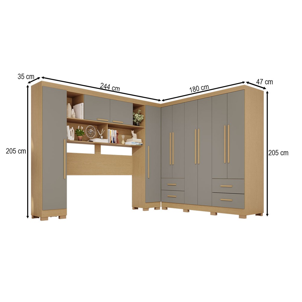 O(a) Guarda-Roupa Casal Modulado Andorra 10 Portas 4 Gavetas com Pés Jequitibá/Granizo - Pnr Móveis é produzido em MDP na escala de brilho Semi-Fosco, e possui um grau de dificuldade de montagem: Médio.