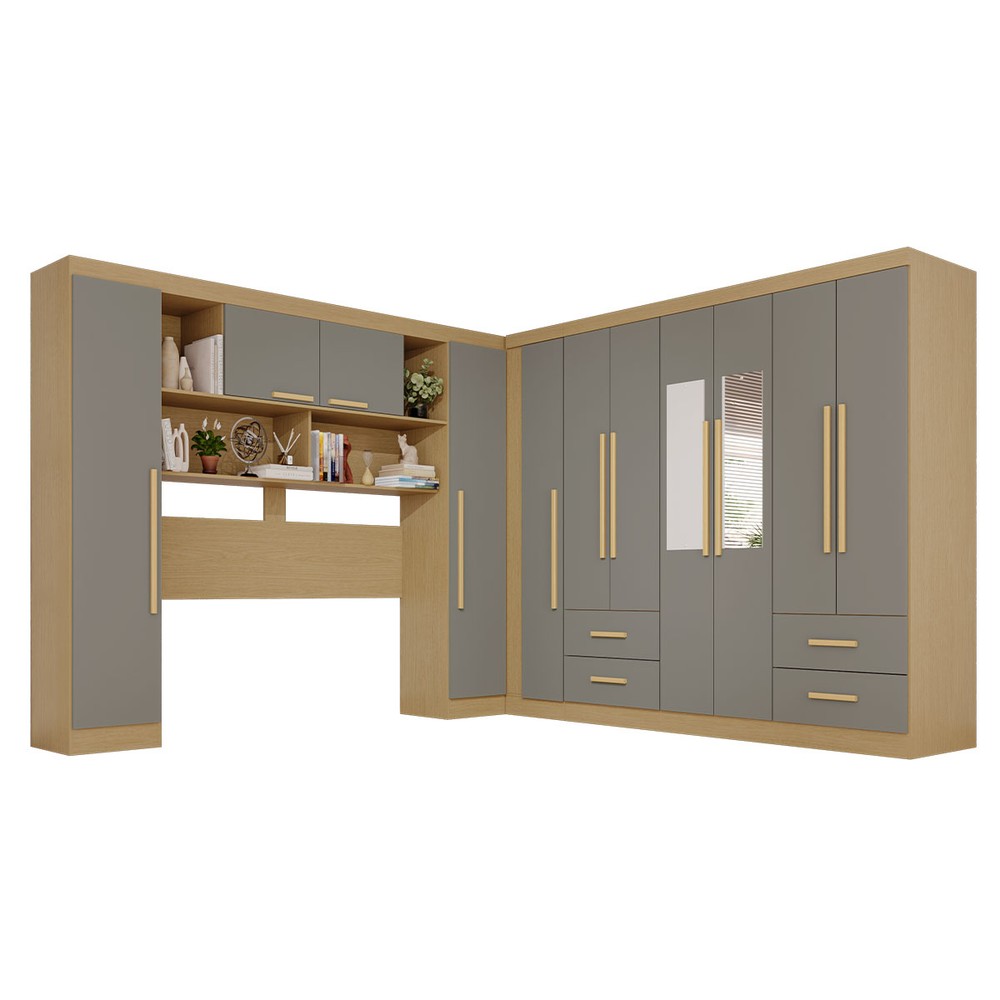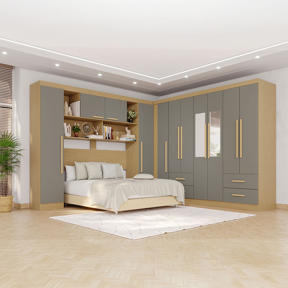 O(a) Guarda-Roupa Casal Modulado Andorra 11 Portas 4 Gavetas com Espelho Jequitibá/Granizo - Pnr Móveis é produzido em MDP na escala de brilho Semi-Fosco, e possui um grau de dificuldade de montagem: Médio.