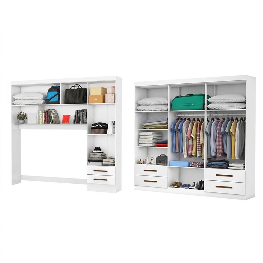 O(a) Guarda-Roupa Casal Modulado com Cama Amazzonite 11 Portas 6 Gavetas Branco - Pnr Móveis é produzido em MDP na escala de brilho Fosco e Semi-Brilho, e possui um grau de dificuldade de montagem: Médio.