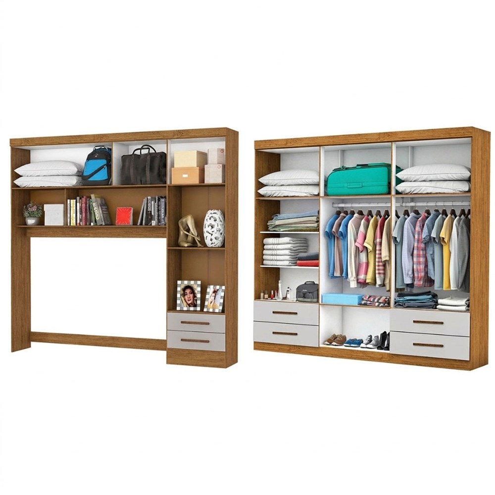 Guarda-Roupa Casal Modulado com Cama Amazzonite 11 Portas 6 Gavetas Cinamomo/Off White - Pnr Móveis