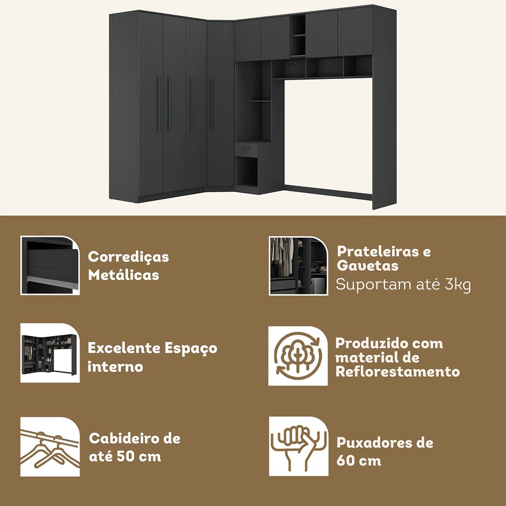 Guarda-Roupa Casal Modulado Lugano 8 Portas 3 Gavetas Grafite - Hecol Móveis
