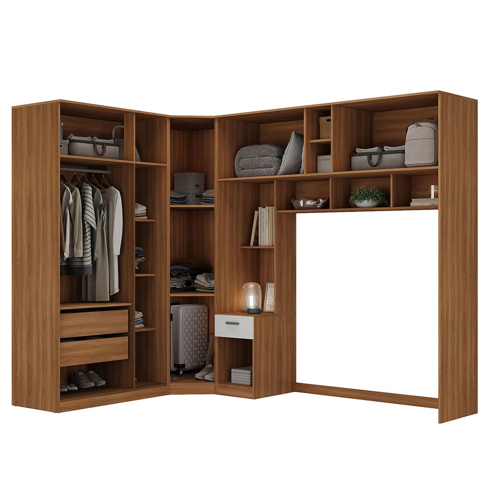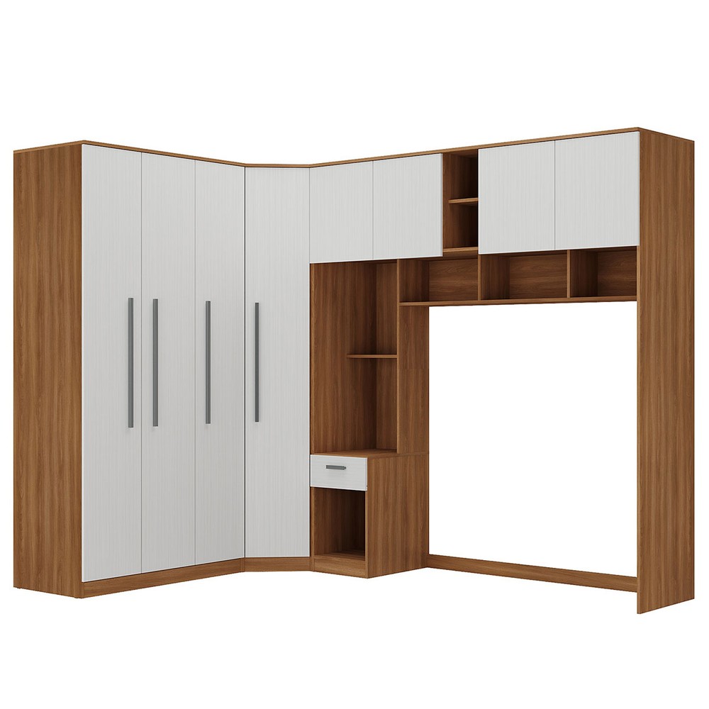 Guarda-Roupa Casal Modulado Lugano 8 Portas 3 Gavetas Nogal/Branco - Hecol Móveis