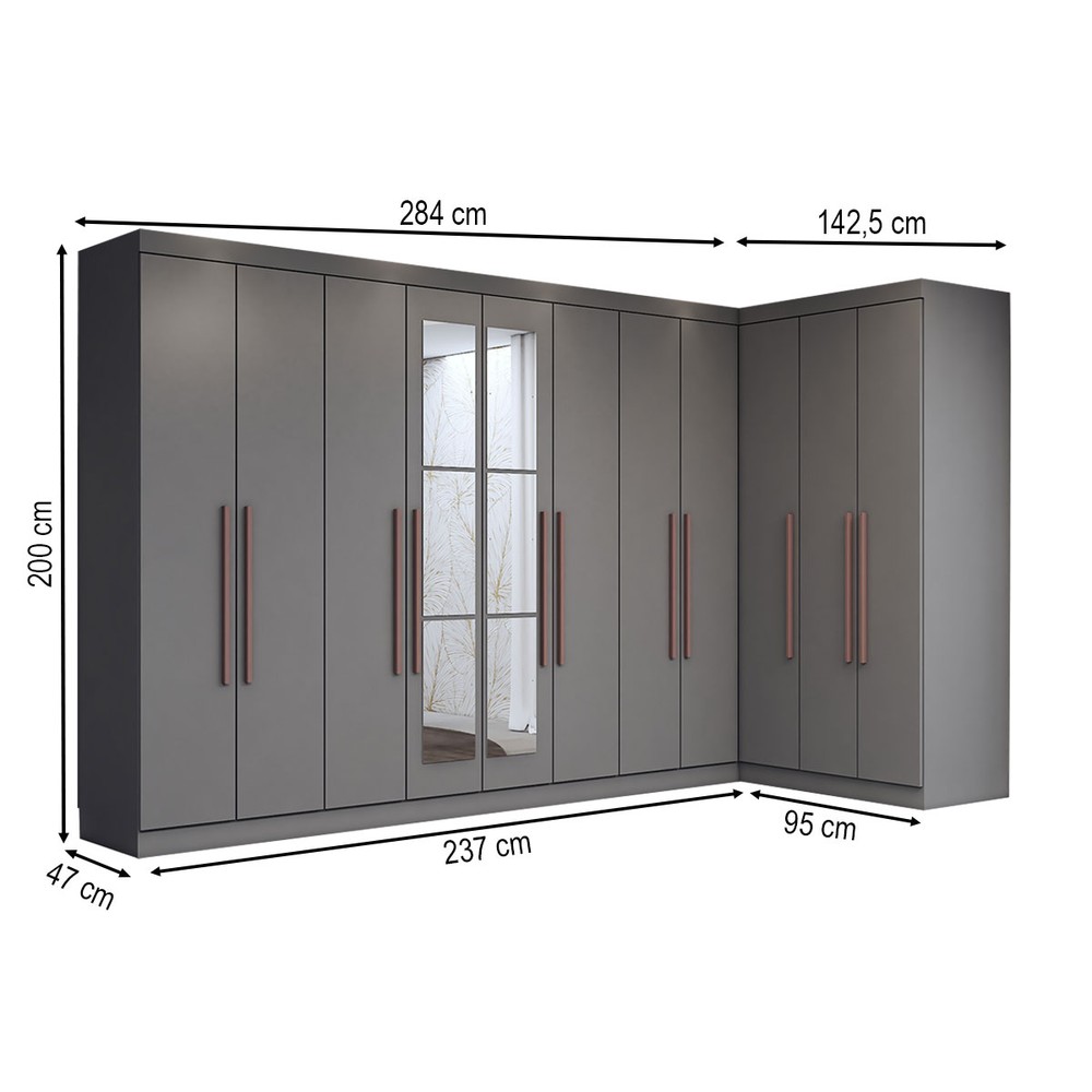O(a) Guarda-Roupa Casal Modulado Odisseia 11 Portas 4 Gavetas com Espelho Onix - Panorama Móveis é produzido em MDP na escala de brilho Brilhante, e possui um grau de dificuldade de montagem: Médio.