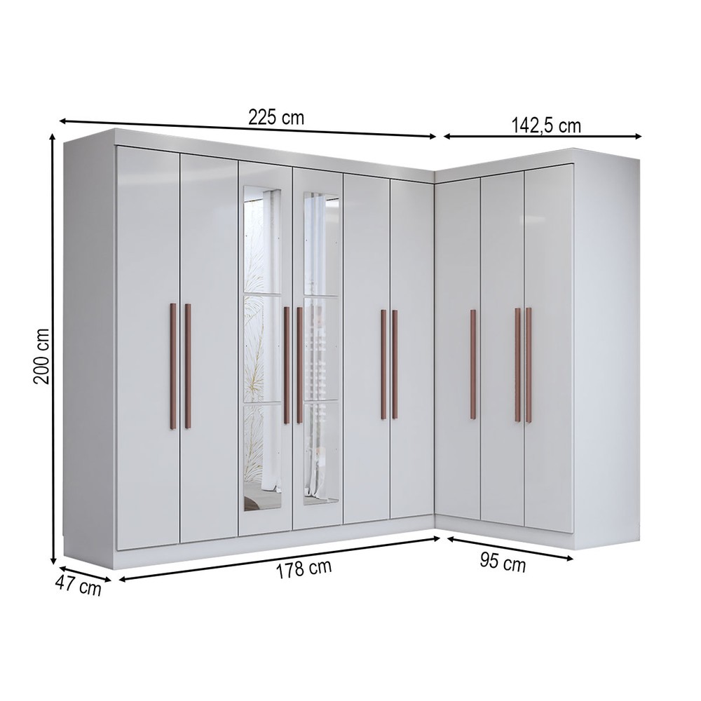 O(a) Guarda-Roupa Casal Modulado Odisseia 9 Portas 2 Gavetas com Espelho Branco - Panorama Móveis é produzido em MDP na escala de brilho Brilhante, e possui um grau de dificuldade de montagem: Médio.