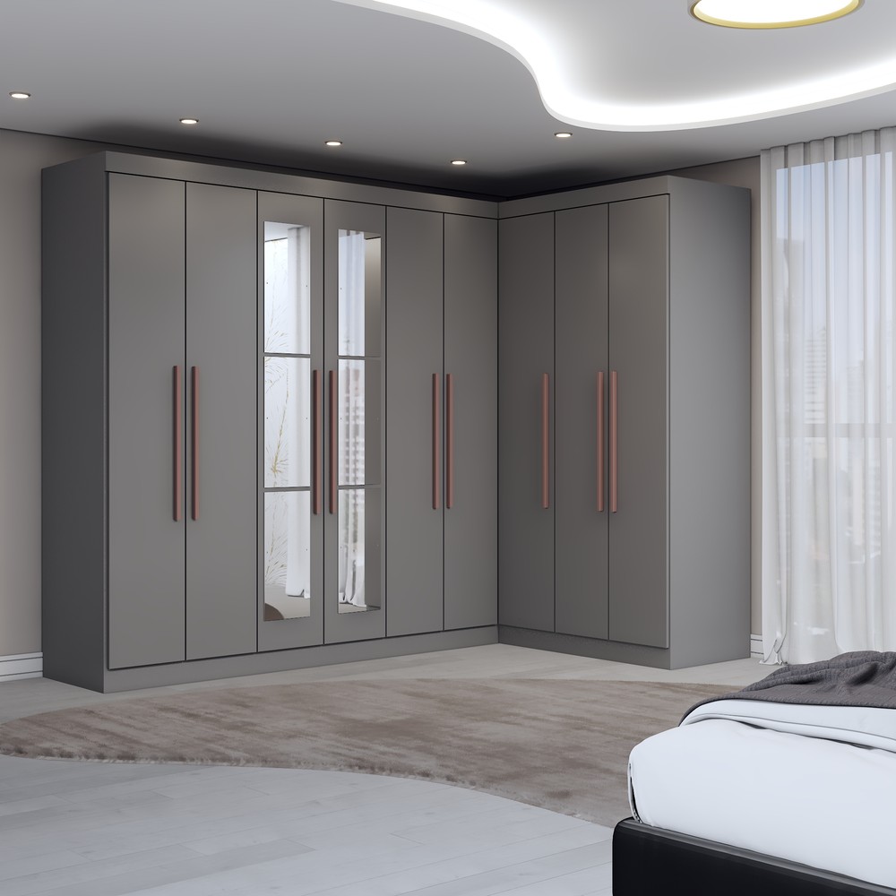 O(a) Guarda-Roupa Casal Modulado Odisseia 9 Portas 2 Gavetas com Espelho Onix - Panorama Móveis é produzido em MDP na escala de brilho Brilhante, e possui um grau de dificuldade de montagem: Médio.
