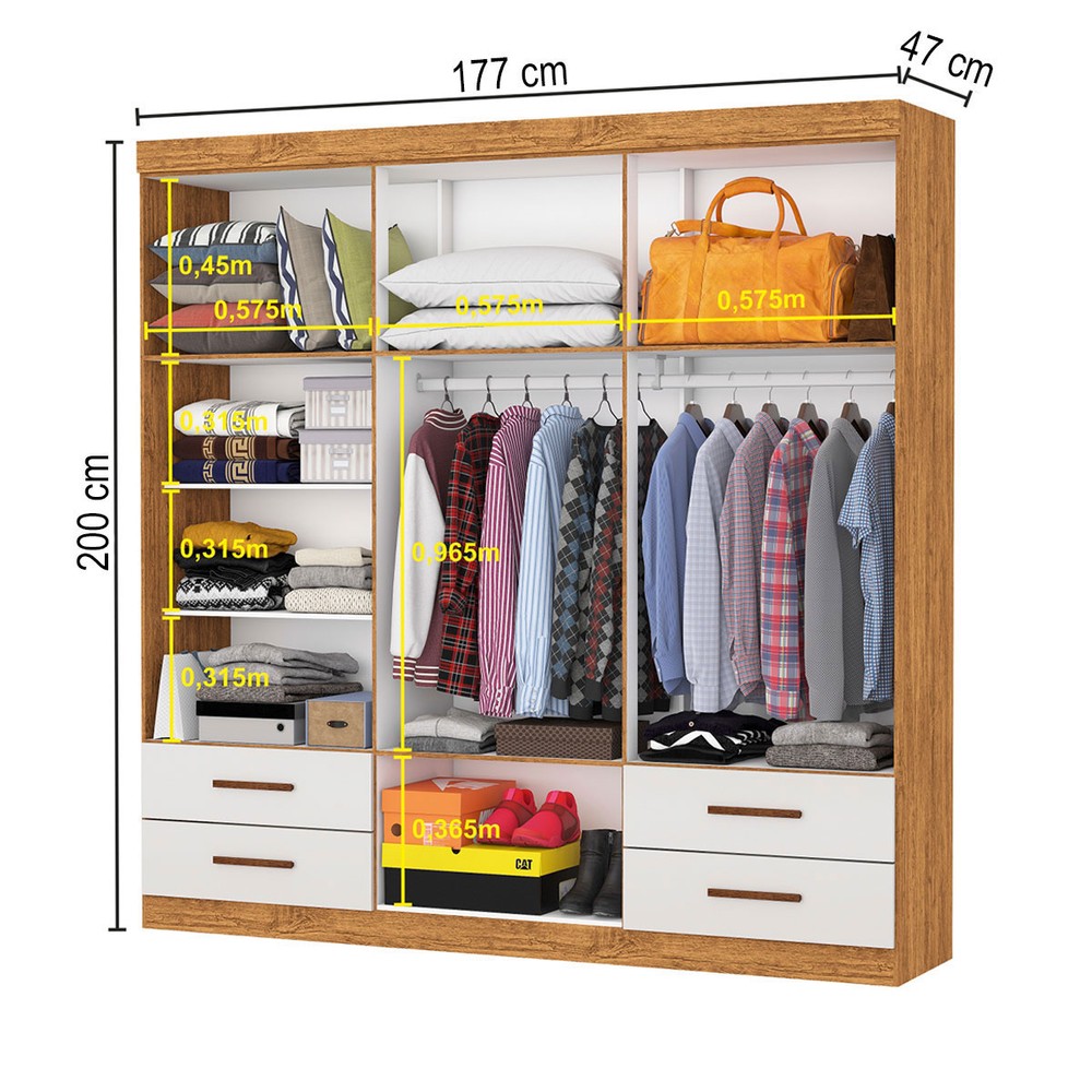 Acompanha Guarda-Roupa + Kit Ferragens + Manual de Montagem