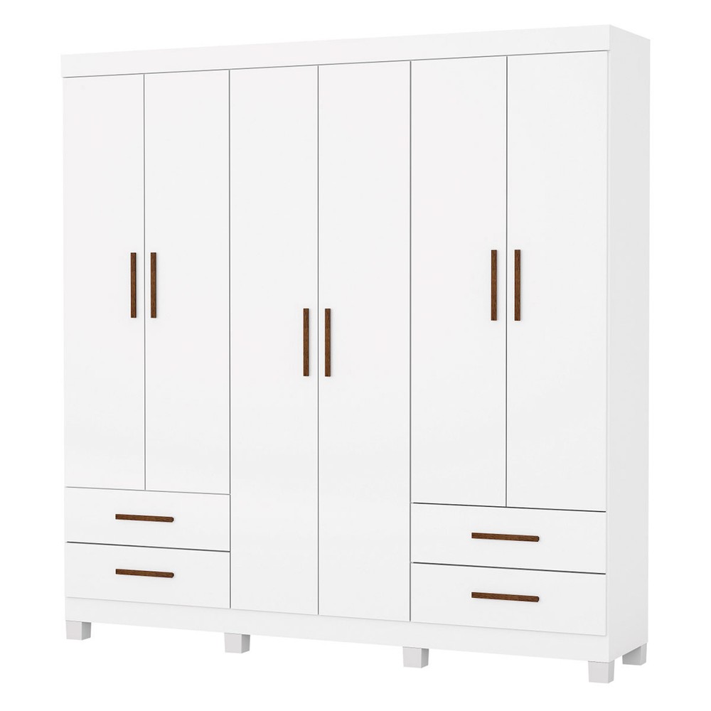 O(a) Guarda-Roupa Casal Mondo 6 Portas 4 Gavetas com Pés Branco - Pnr Móveis é produzido em MDP na escala de brilho Fosco e Semi-Brilho, e possui um grau de dificuldade de montagem: Médio.