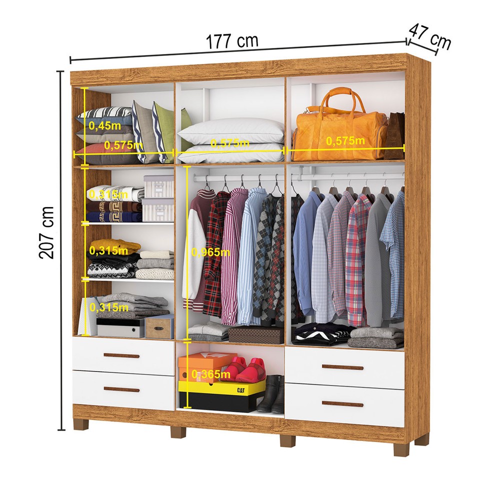 O(a) Guarda-Roupa Casal Mondo 6 Portas 4 Gavetas com Pés Cinamomo/Branco - Pnr Móveis é produzido em MDP na escala de brilho Fosco e Semi-Brilho, e possui um grau de dificuldade de montagem: Médio.