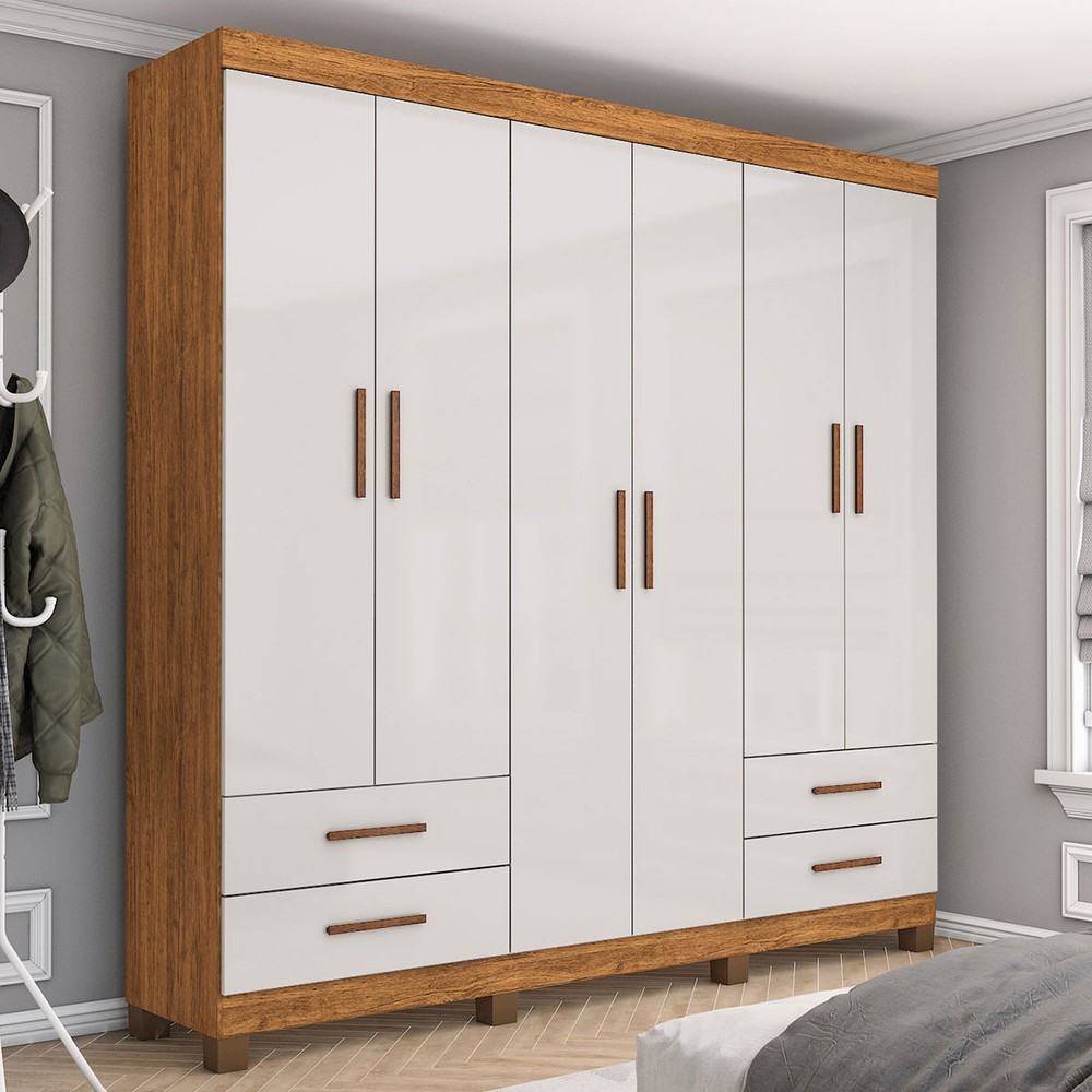 O(a) Guarda-Roupa Casal Genova 6 Portas 4 Gavetas 22110 Cinamomo/Off White - Carioca Móveis é produzido em MDP na escala de brilho Fosco e Semi-Brilho, e possui um grau de dificuldade de montagem: Médio.