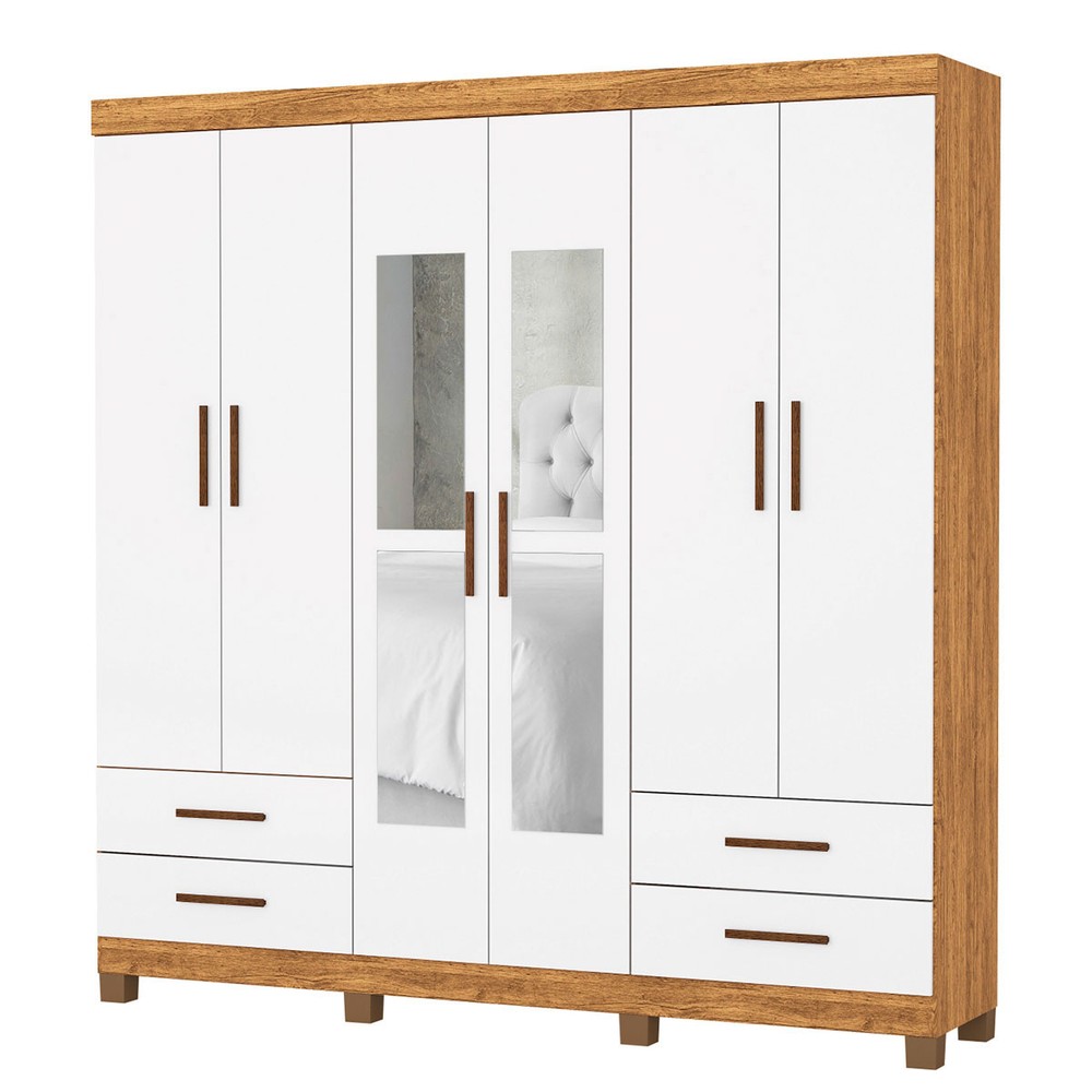 O(a) Guarda-Roupa Casal Mondo 6 Portas 4 Gavetas com Pés e Espelho Cinamomo/Branco - Pnr Móveis é produzido em MDP na escala de brilho Fosco e Semi-Brilho, e possui um grau de dificuldade de montagem: Médio.