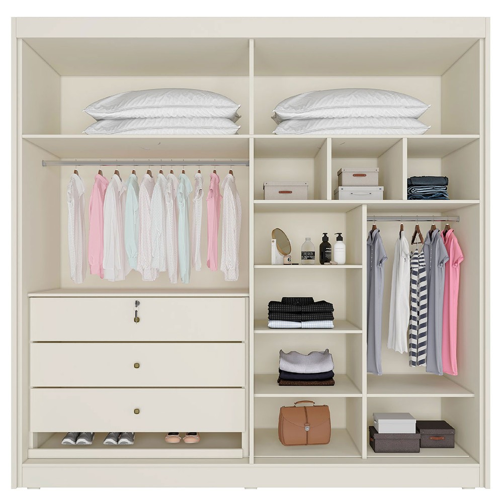 O(a) Guarda-Roupa Casal Nantes 4 Portas 3 Gavetas 100% Mdf Off White - Europa Móveis é produzido em 100% MDF na escala de brilho Semi-Brilho, e possui um grau de dificuldade de montagem: Médio.
