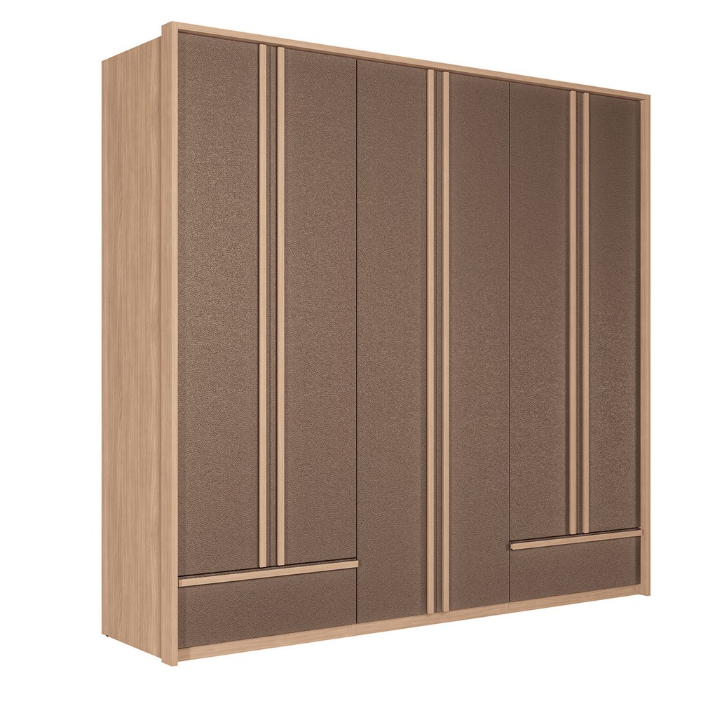 O(a) Guarda-Roupa Casal Torino 6 Portas 5 Gavetas Wood/Terracota - Santos Andirá é produzido em MDF, MDP e HDF na escala de brilho Fosca com Textura, e possui um grau de dificuldade de montagem: Médio.