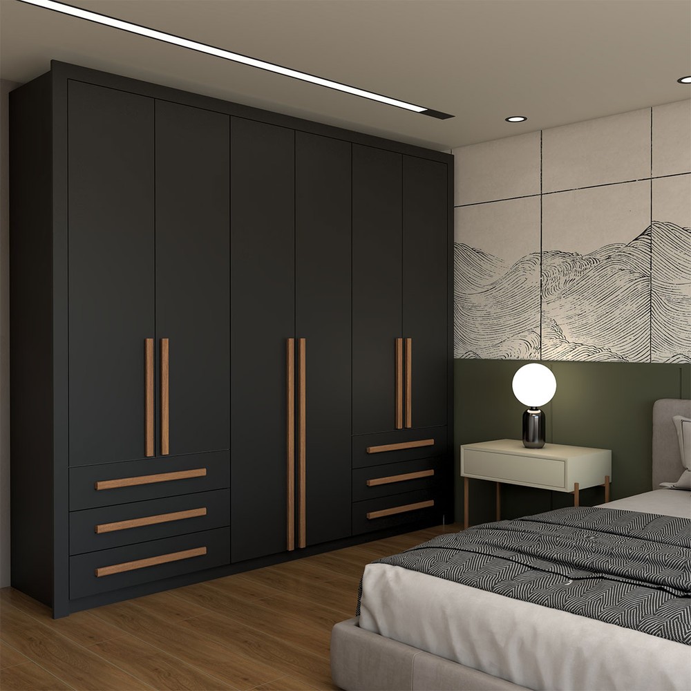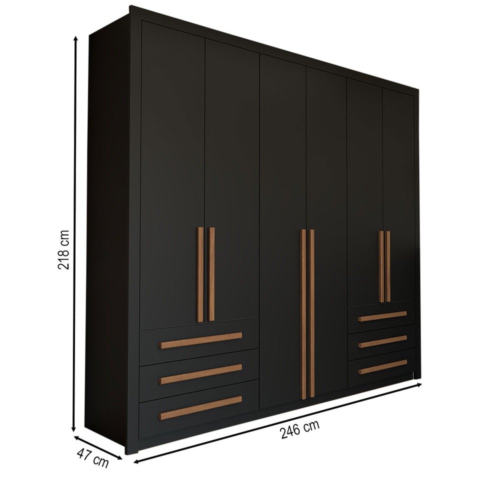 O(a) Guarda-Roupa Casal Nobile Plus 6 Portas 6 Gavetas Preto - Panorama Móveis é produzido em MDP na escala de brilho Brilhante, e possui um grau de dificuldade de montagem: Médio.
