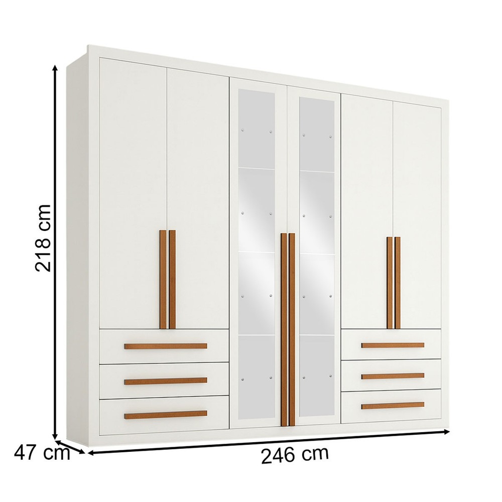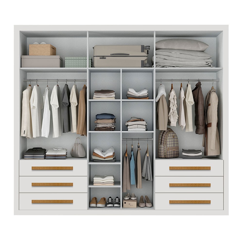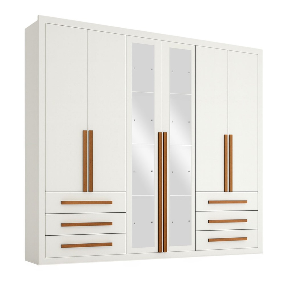 O(a) Guarda-Roupa Casal Monaco Plus 6 Portas 6 Gavetas com Espelho Branco - Maxel é produzido em MDP na escala de brilho Brilhante, e possui um grau de dificuldade de montagem: Médio.