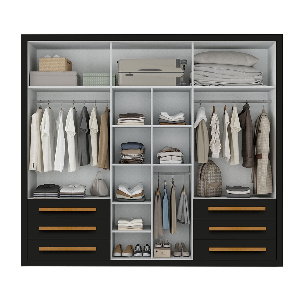 O(a) Guarda-Roupa Casal Nobre Plus 6 Portas 6 Gavetas com Espelho Preto - Pnr Móveis é produzido em MDP na escala de brilho Brilhante, e possui um grau de dificuldade de montagem: Médio.