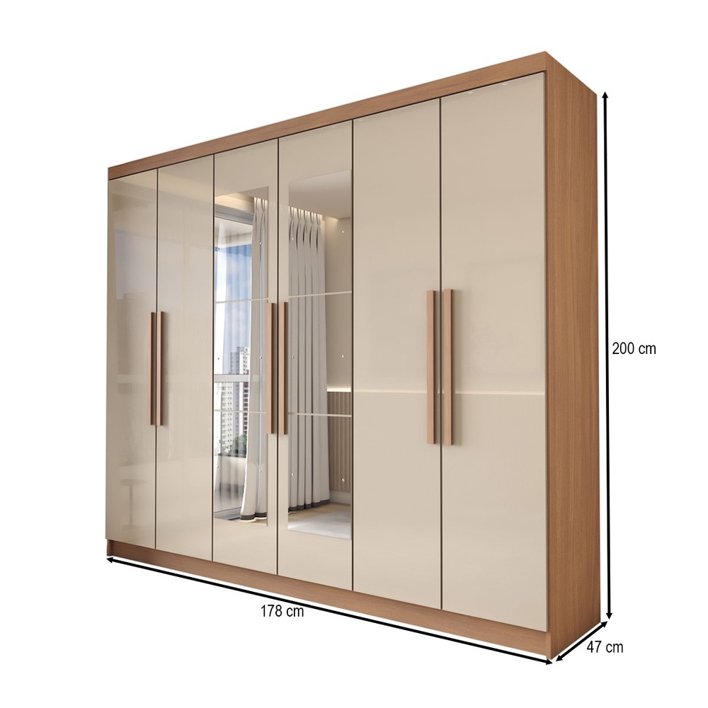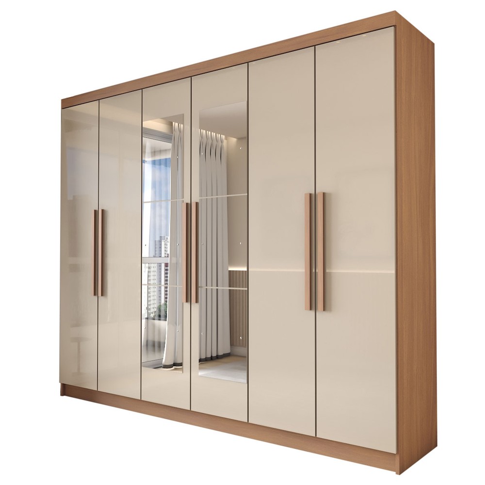 O(a) Guarda-Roupa Casal Odisseia 6 Portas 2 Gavetas com Espelho Cinamomo/Off White - Panorama Móveis é produzido em MDP na escala de brilho Brilho, e possui um grau de dificuldade de montagem: Médio.