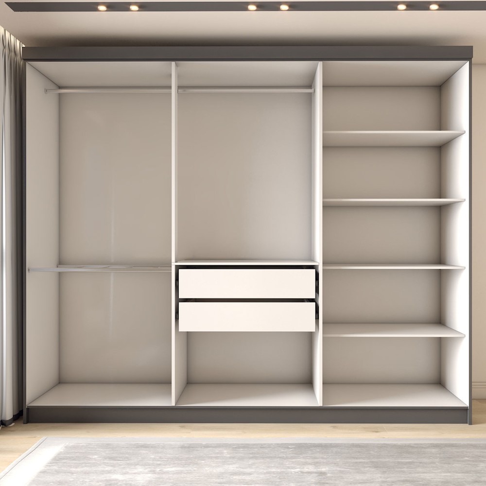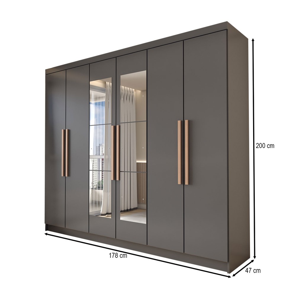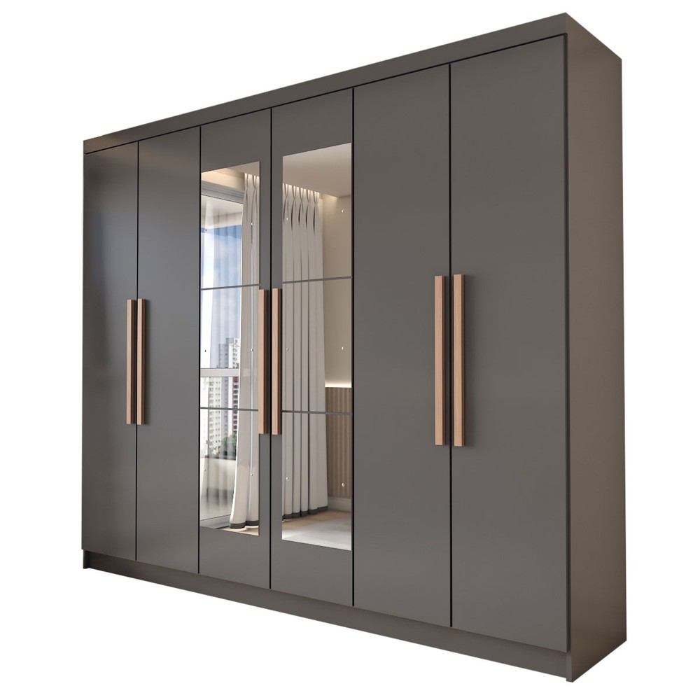 O(a) Guarda-Roupa Casal Odisseia 6 Portas 2 Gavetas com Espelho Onix - Panorama Móveis é produzido em MDP na escala de brilho Brilho, e possui um grau de dificuldade de montagem: Médio.