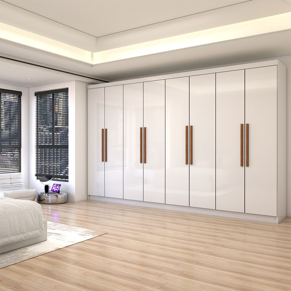 O(a) Guarda-Roupa Casal Odisseia 8 Portas 4 Gavetas Branco - Panorama Móveis é produzido em MDP na escala de brilho Brilhante, e possui um grau de dificuldade de montagem: Médio.
