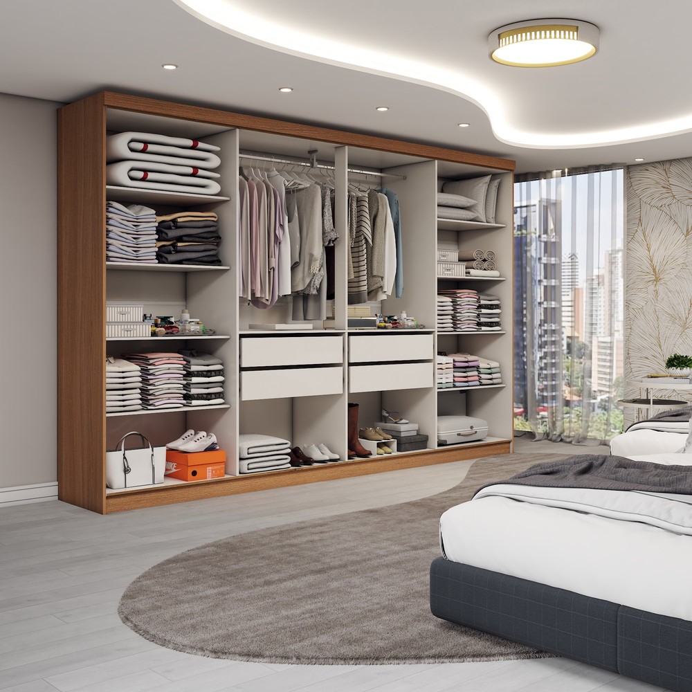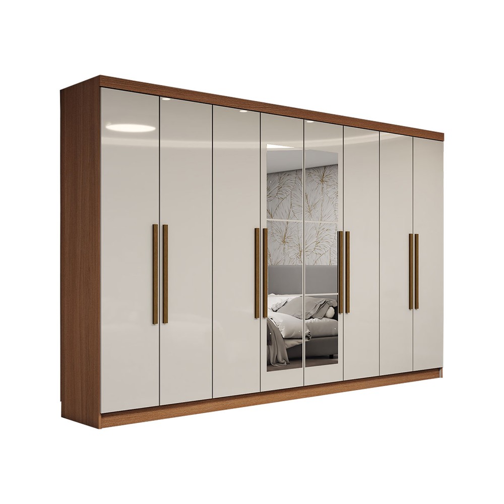 Guarda-Roupa Paris 8 Portas 4 Gavetas com Espelho Cinamomo/Off White - Maxel