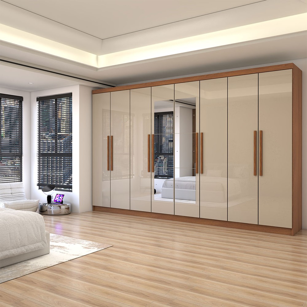 O(a) Guarda-Roupa Casal Odisseia 8 Portas 4 Gavetas com Espelho Cinamomo/Off White - Panorama Móveis é produzido em MDP na escala de brilho Brilhante, e possui um grau de dificuldade de montagem: Médio.