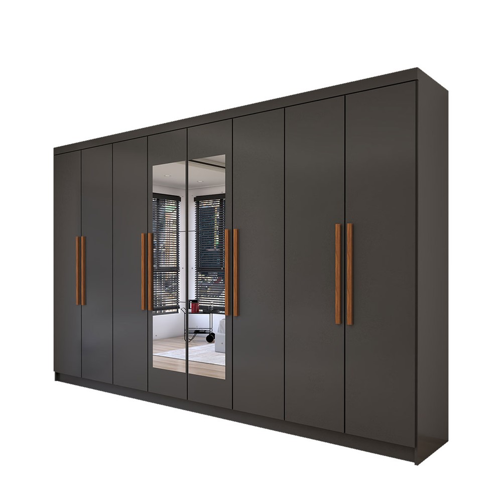 O(a) Guarda-Roupa Casal Odisseia 8 Portas 4 Gavetas com Espelho Onix - Panorama Móveis é produzido em MDP na escala de brilho Brilhante, e possui um grau de dificuldade de montagem: Médio.