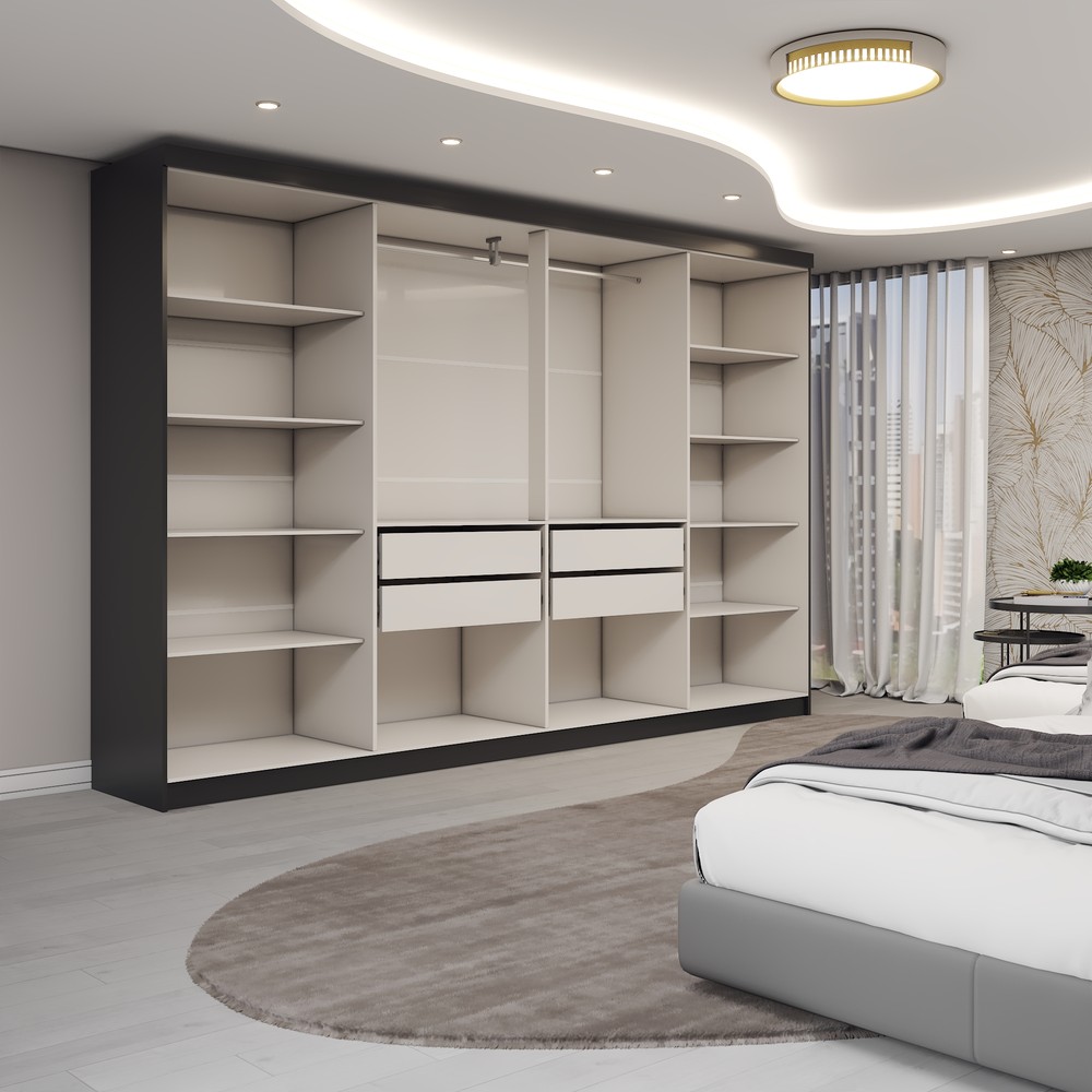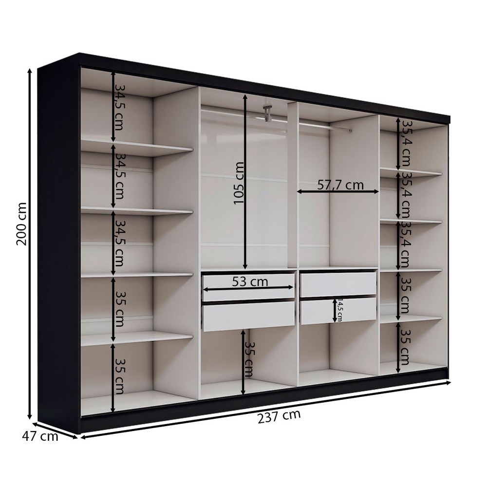 O(a) Guarda-Roupa Casal Odisseia 8 Portas 4 Gavetas Preto - Panorama Móveis é produzido em MDP na escala de brilho Brilho, e possui um grau de dificuldade de montagem: Médio.