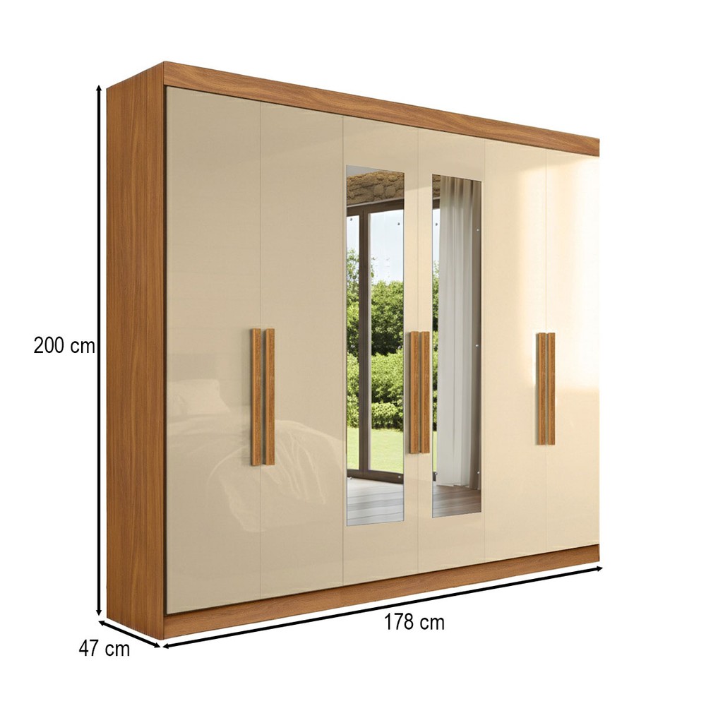 Guarda-Roupa Casal Olimpo 6 Portas 2 Gavetas 100% Mdf com Espelho Cinamomo/Off White - Maxel